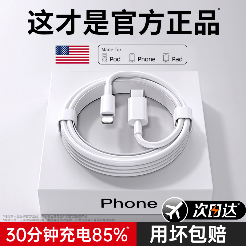 第一卫适用苹果数据线iPhone13快充12充电14PD线15pro器xr闪充16加长17手机2米X正品max快速lighting闪充iPad