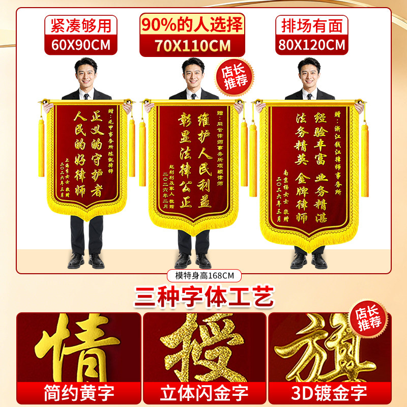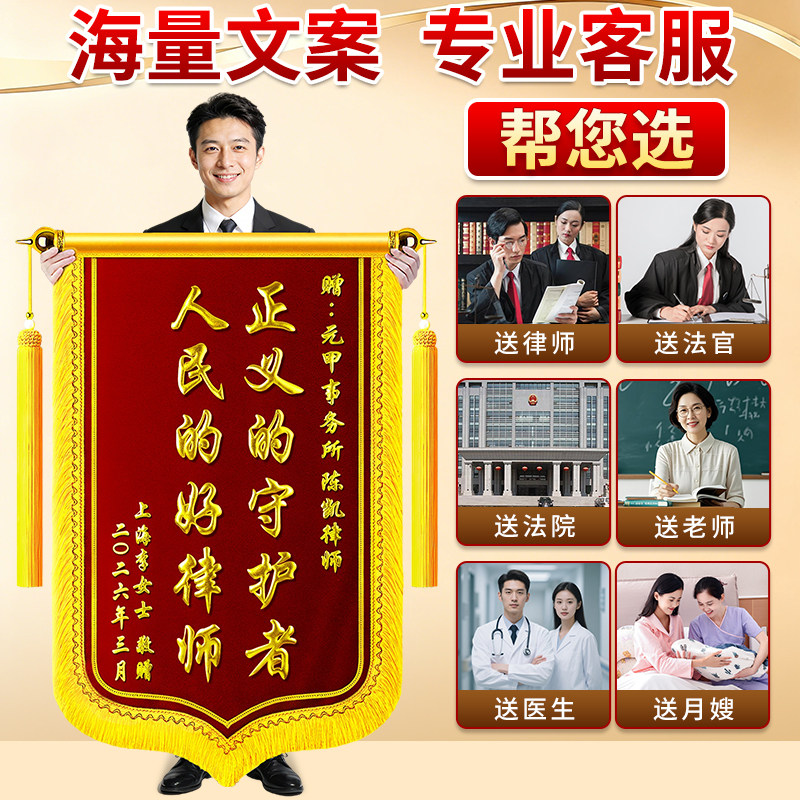 锦旗定制定做感谢律师赠送律师老师医生民警月嫂月子中心物业医护人员驾校教练仙家送订婚搞笑装修