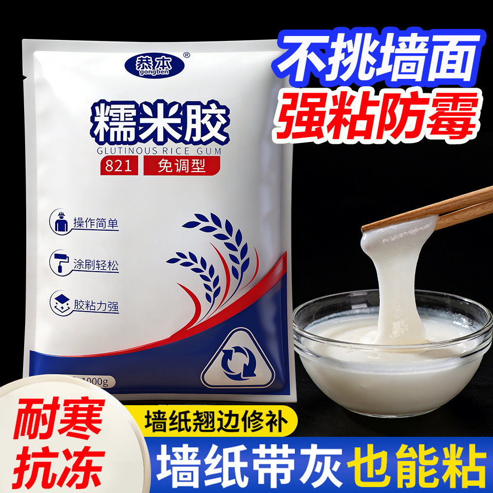 糯米胶壁纸墙布粘壁布专用无甲醛免调型胶贴墙纸修补胶水基膜套装