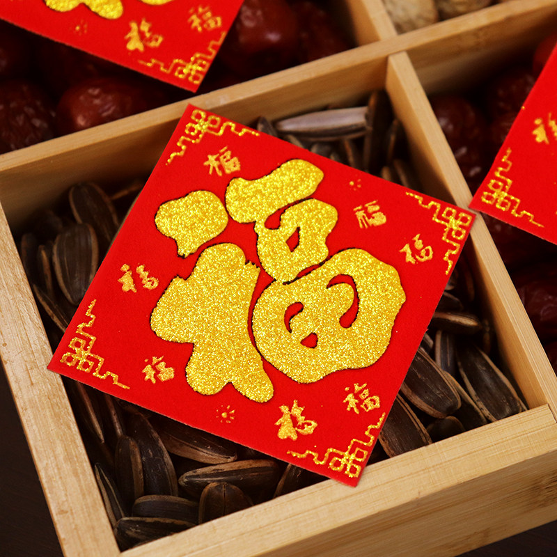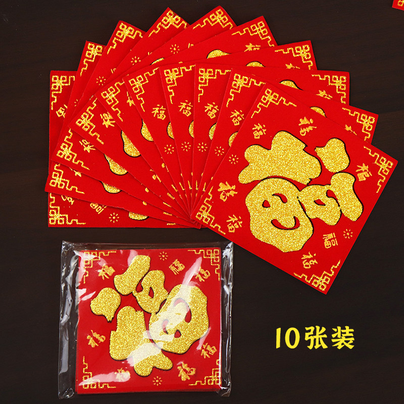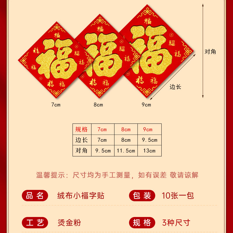 新款绒布迷你小福字贴烫金斗新年过年花盆冰箱贴花瓶贴植绒书法