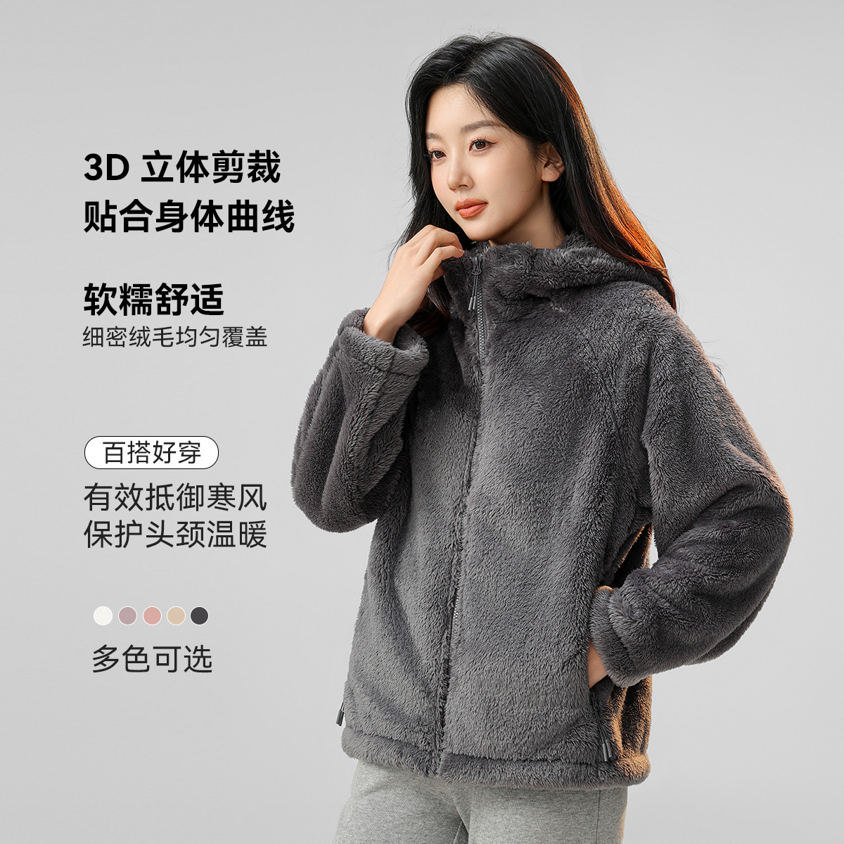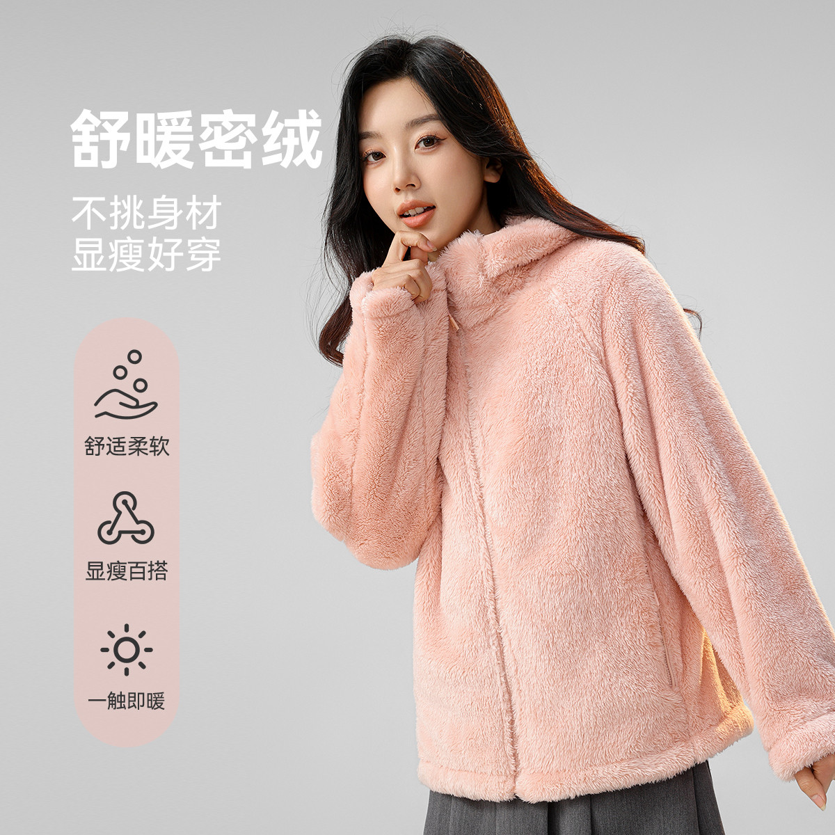 修身摇粒绒内胆~保暖内搭抓绒卫衣女外套上衣双面软糯打底加绒