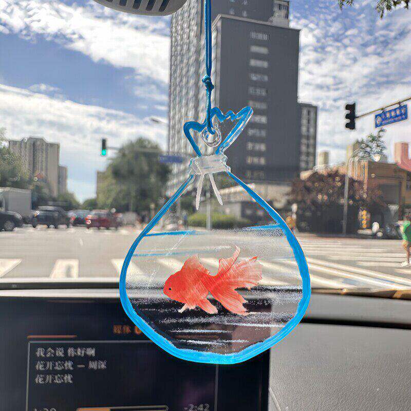 车载后视镜金鱼饰品挂件汽车内摆件平安好运高颜值高透可爱治愈系