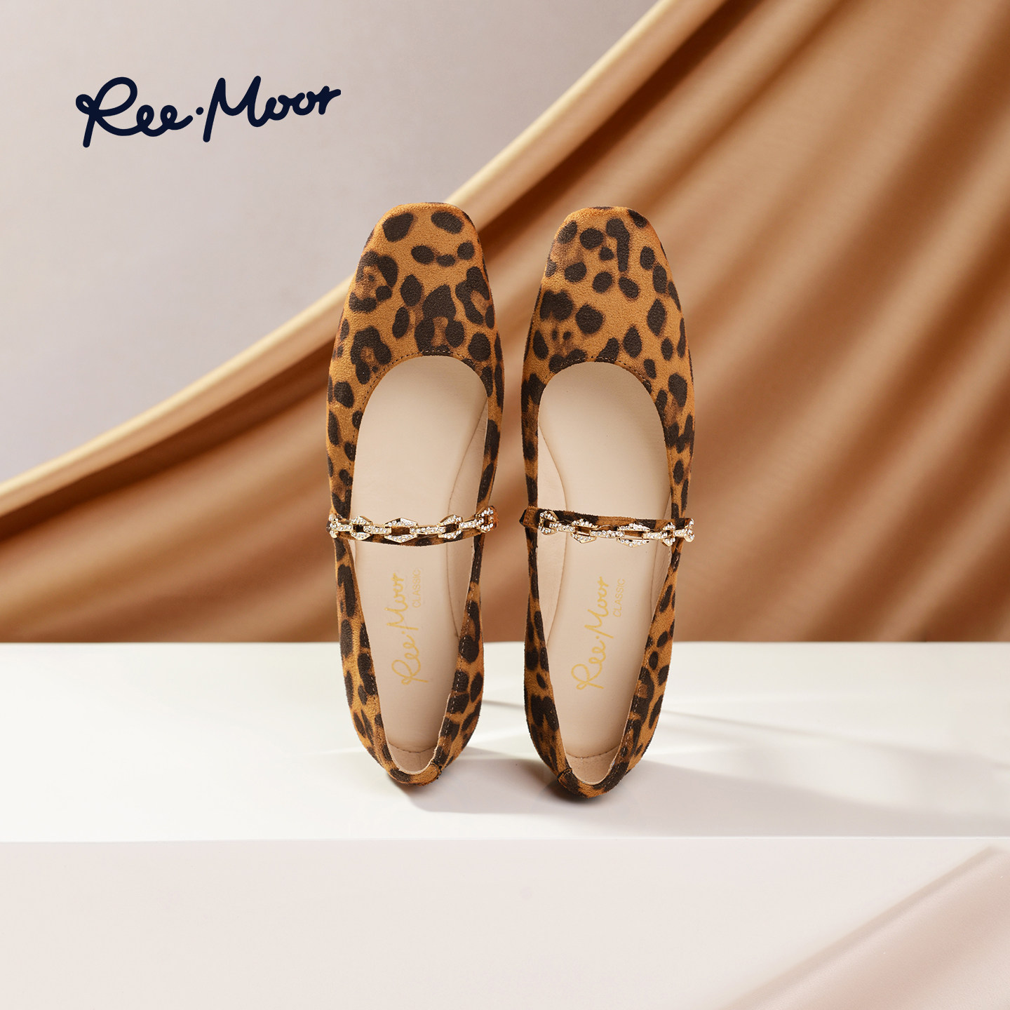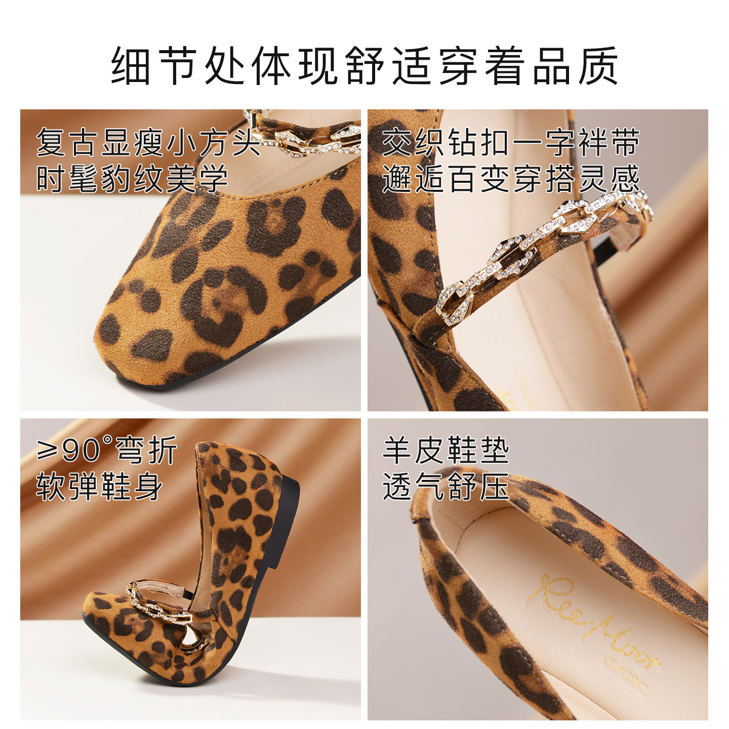 REEMOOR睿慕2025秋季新款豹纹方头玛丽珍鞋女单鞋低跟鞋女鞋
