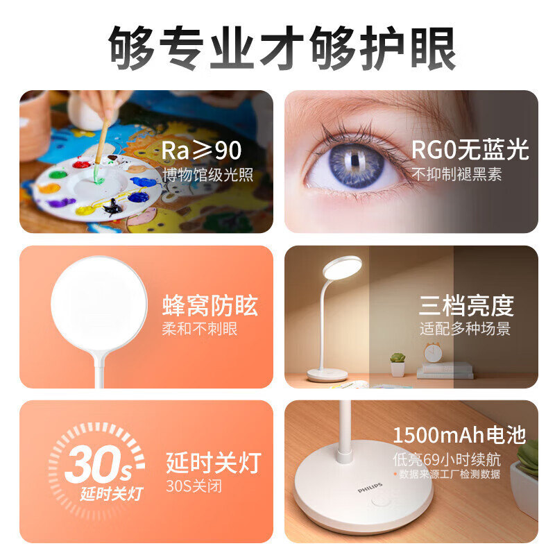 【自营】飞利浦护眼台灯大学生宿舍灯书桌床头学习阅读台灯酷优P3