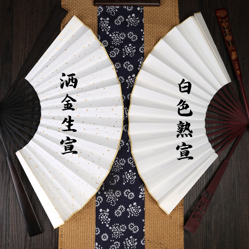 江左空白宣纸古风扇子折扇国画书法绘画生宣加厚扇面7寸8寸9寸10寸熟宣工笔画小楷书法专用男女扇diy毛笔创作