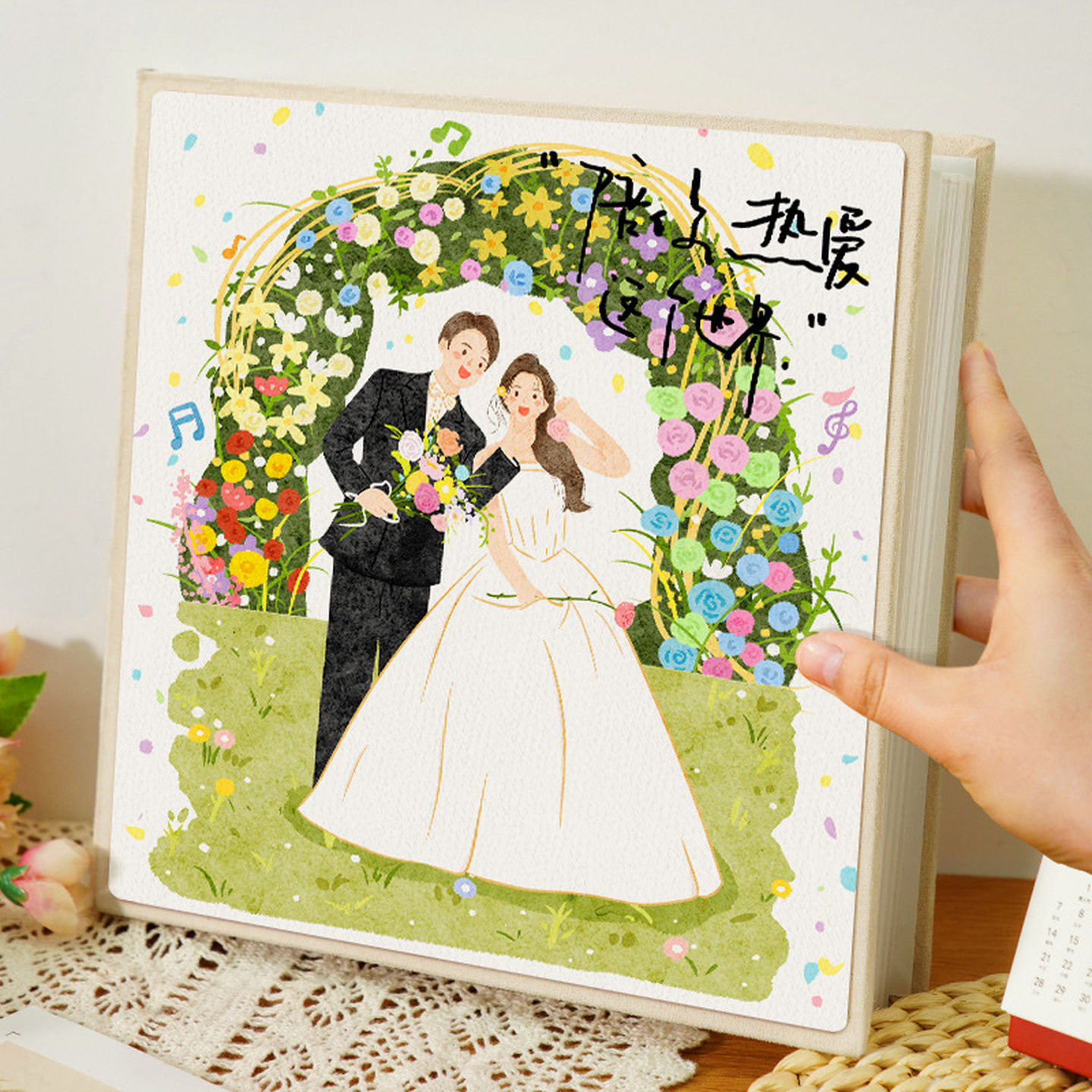diy结婚礼跟拍照片收纳相册本混合尺寸3寸拍立得情侣自粘贴覆膜式
