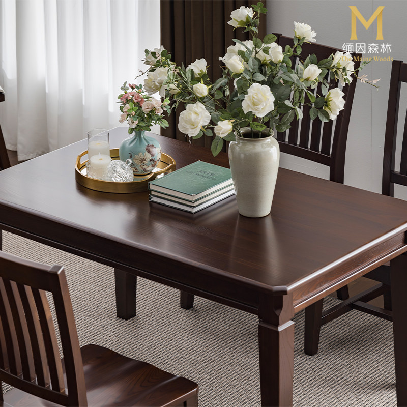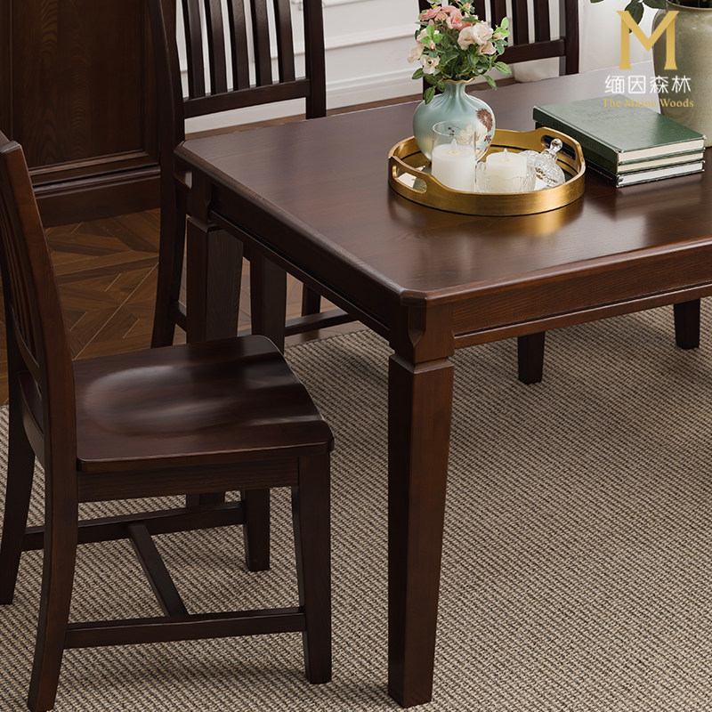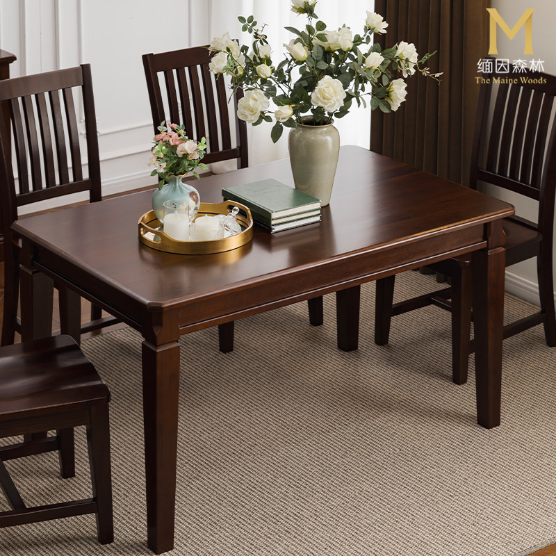 方柱餐桌 家用实木餐桌儿童友好型 桌子长方形全实木美式
