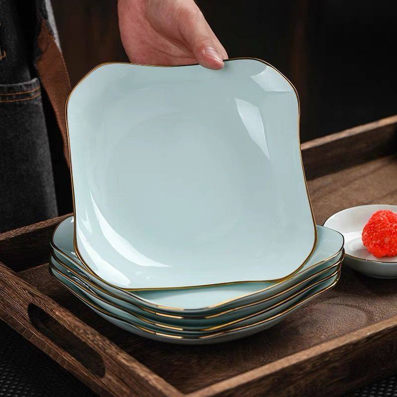 轻奢盘子菜盘家用2024新款高级感餐盘碟子四方盘陶瓷碗碟套装餐具