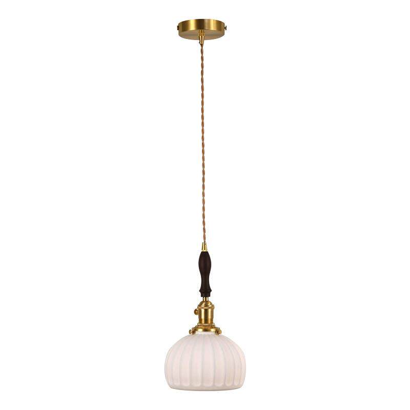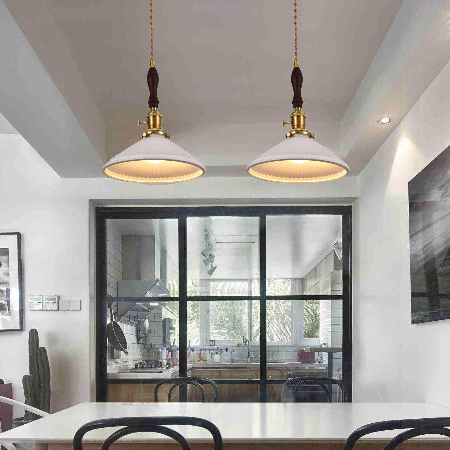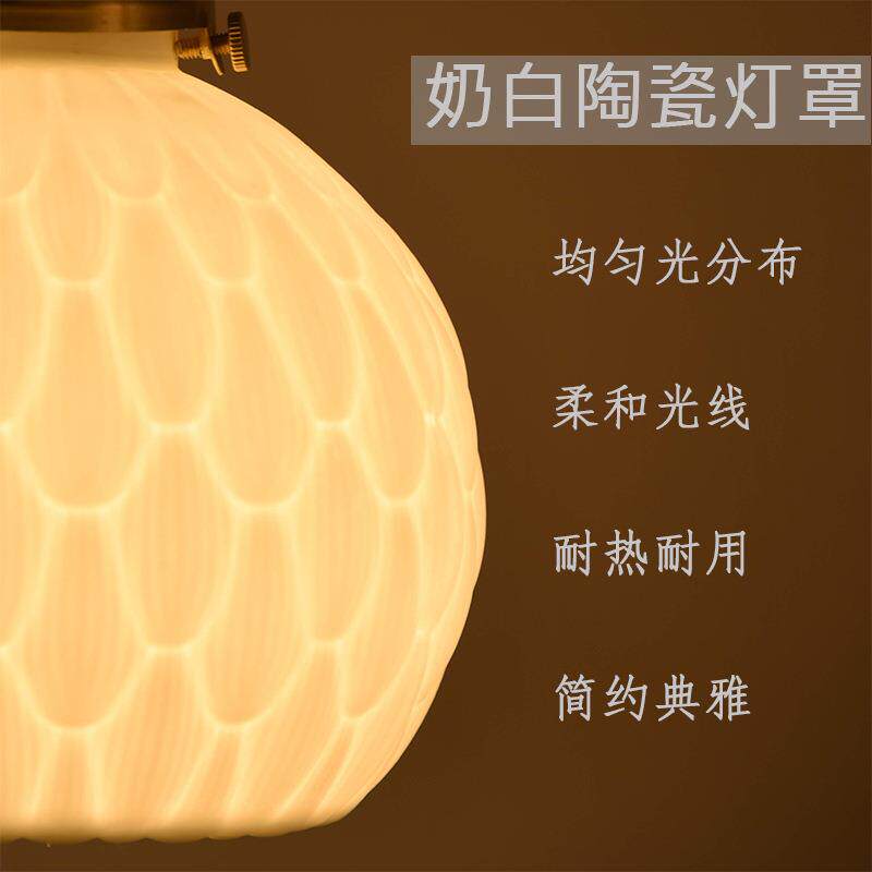 全铜餐吊灯陶瓷灯罩实木胡桃单吊搭配餐厅床头灯百褶灯带开关软装