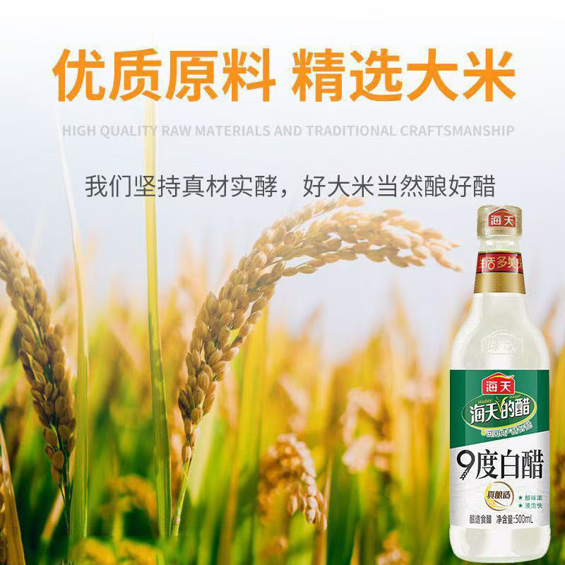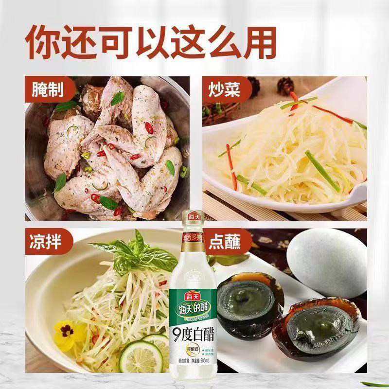 海天9度白醋500mL/800mL酿造食醋凉拌腌蘸饺子清洁除垢泡脚用白醋