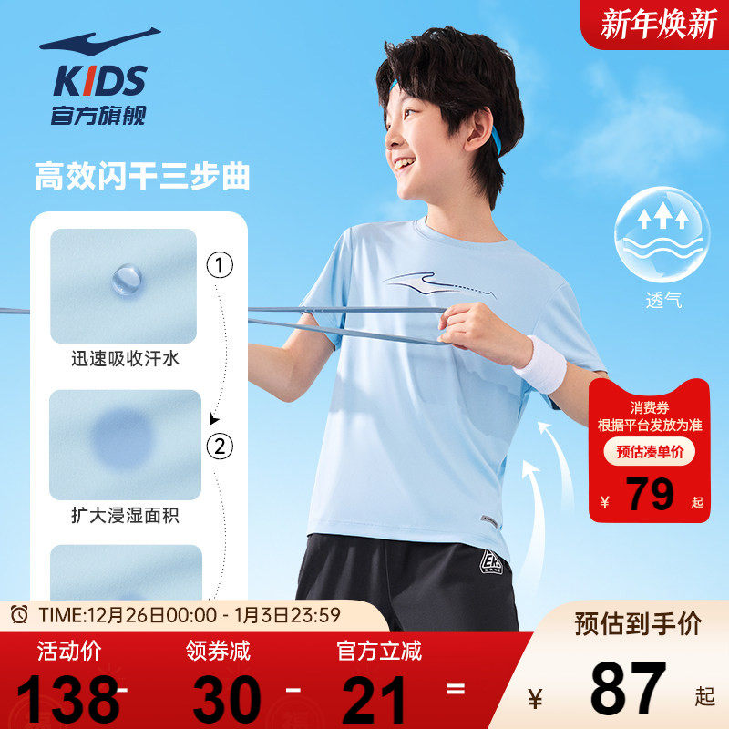鸿星尔克男童夏季套装短袖长裤两件套运动速干透气T恤防蚊裤套装