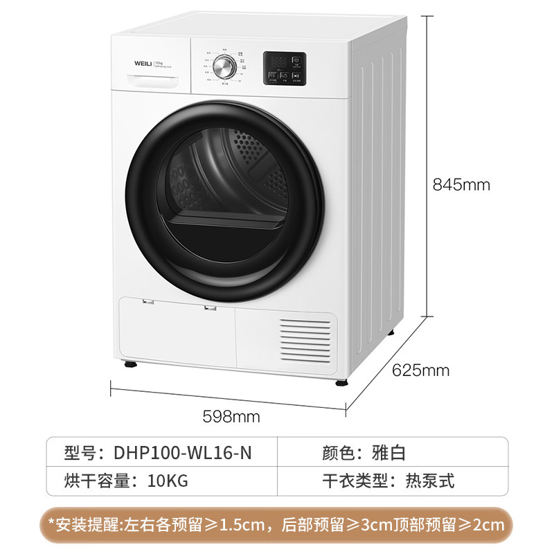 威力10公斤KG全自动除菌除螨干衣机滚筒家用热泵式烘干机WL16-N