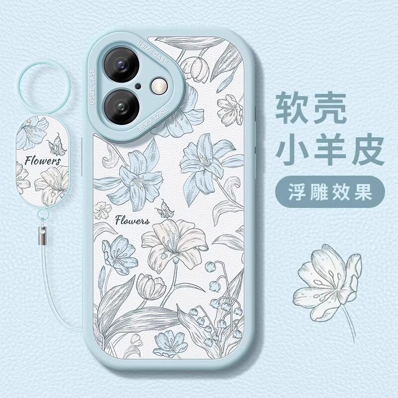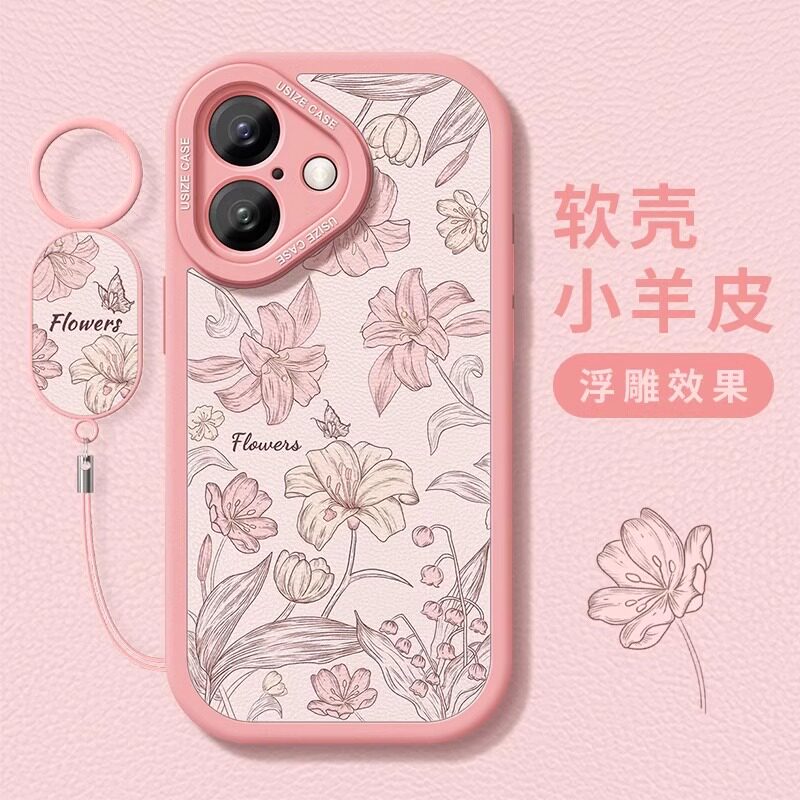 复古百合适用苹果17promax手机壳16新款iphone15pro小羊皮带手环14plus全包防摔13pmins风ip12高级感11保护套