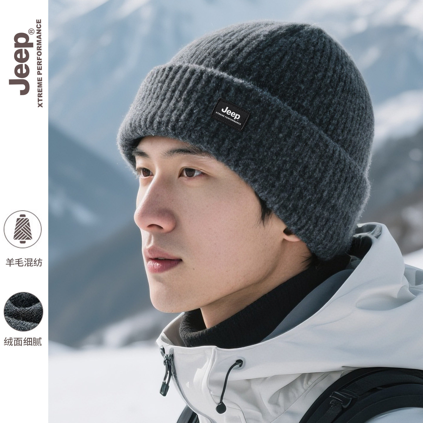 jeep吉普男士冬季羊毛帽子保暖加绒加厚毛线帽男冬防风骑行针织帽