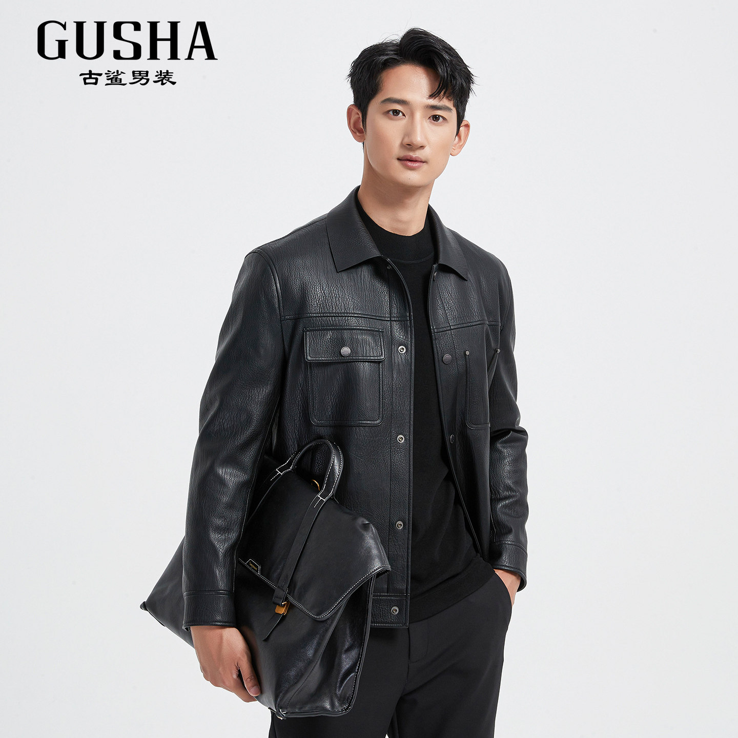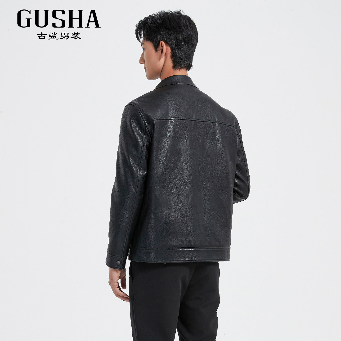 【羽绒皮衣】古鲨轻奢高端翻领外套男 商务黑保暖PU皮夹克2025冬