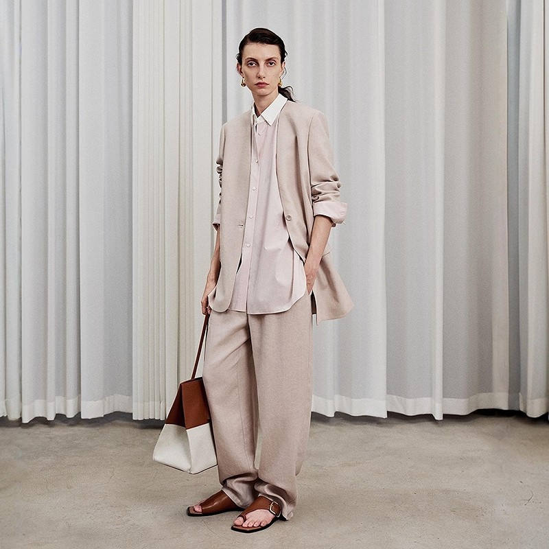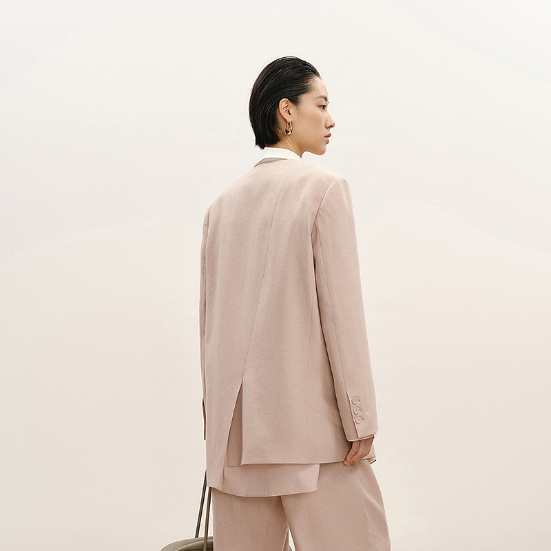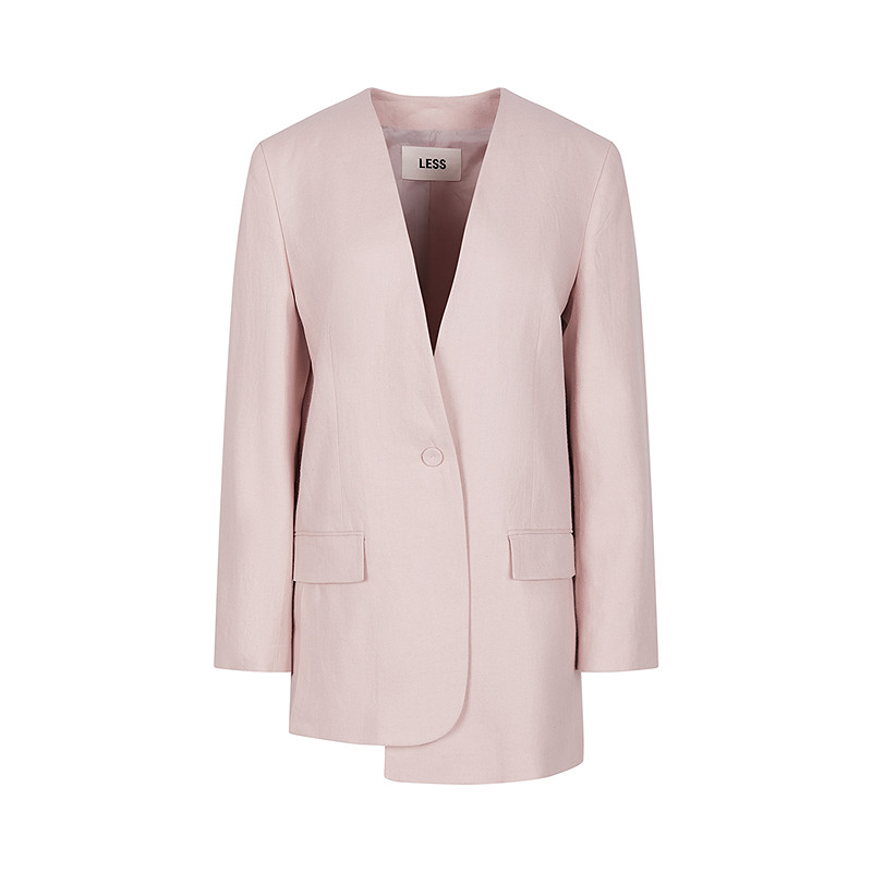 【商场同款】LESS2026春新款高质感亚麻无领不对称西装2Q2713290