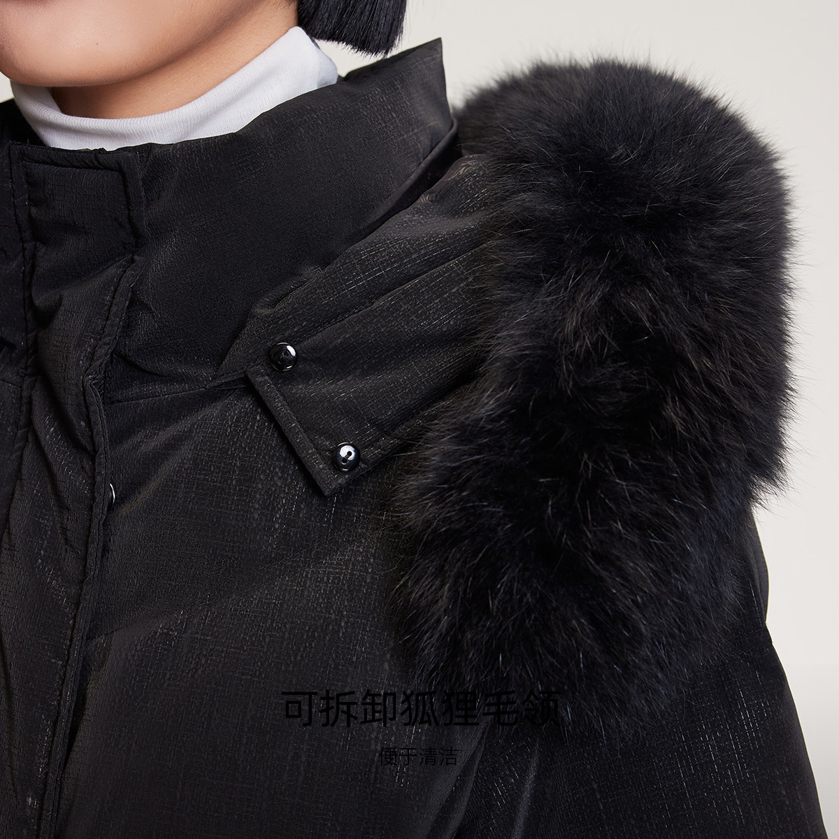 可拆卸狐狸毛领便于清洁 按扣+双向拉链门襟