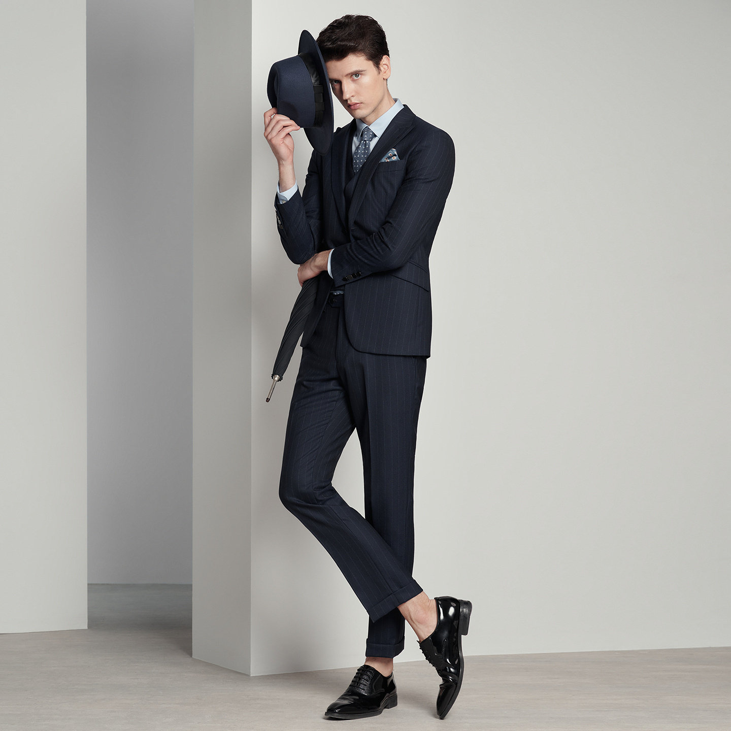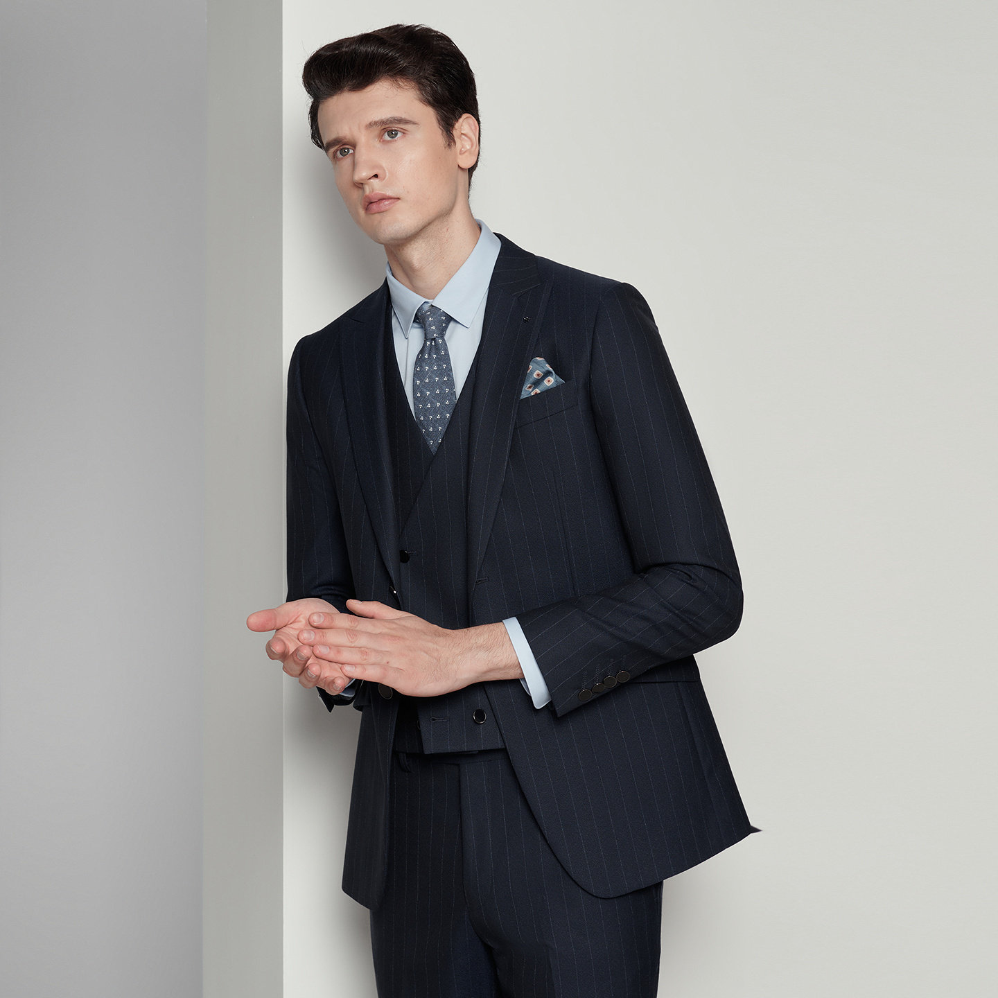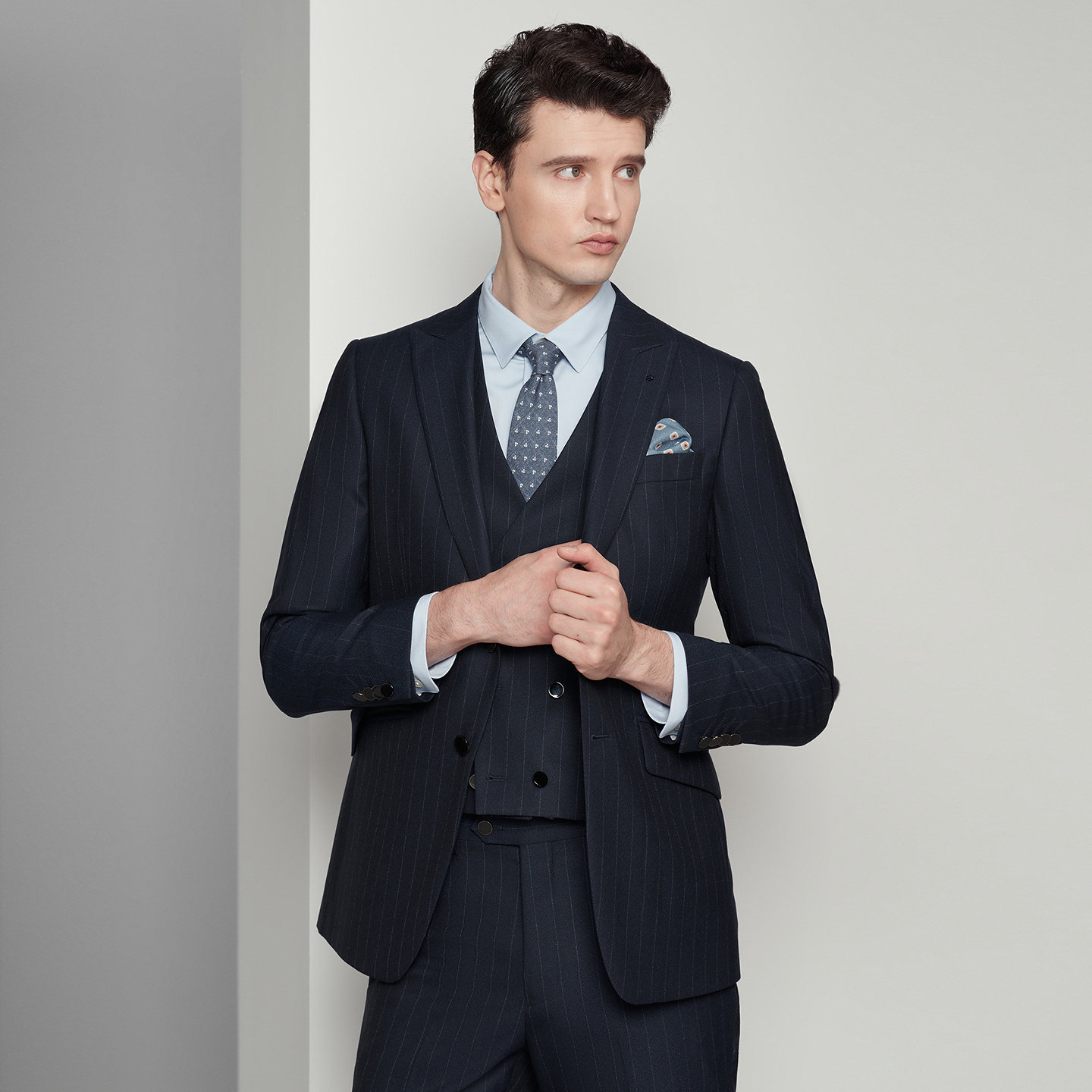 JODOLL乔顿商务修身西服套装上衣男绵羊毛桑蚕丝婚庆时尚条纹西装