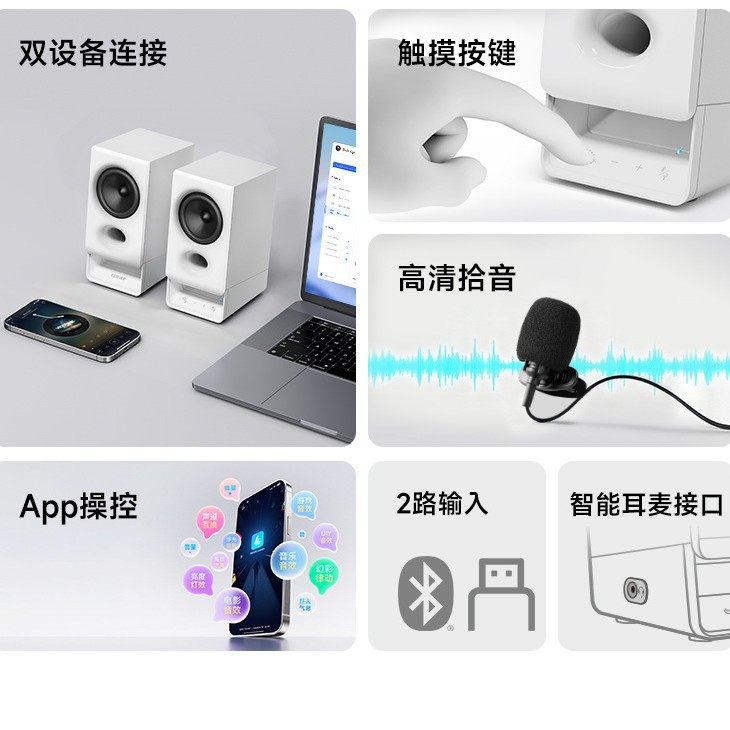Edifier/漫步者 R20多媒体音箱小巧箱体曙光灯效声场精准触摸按键
