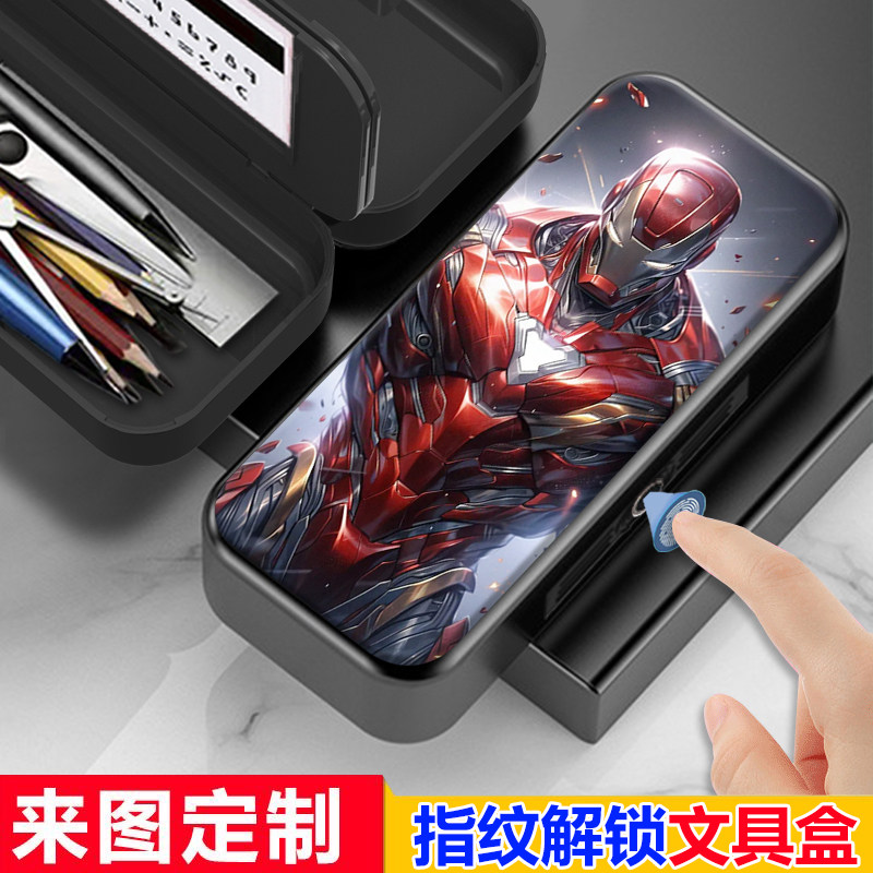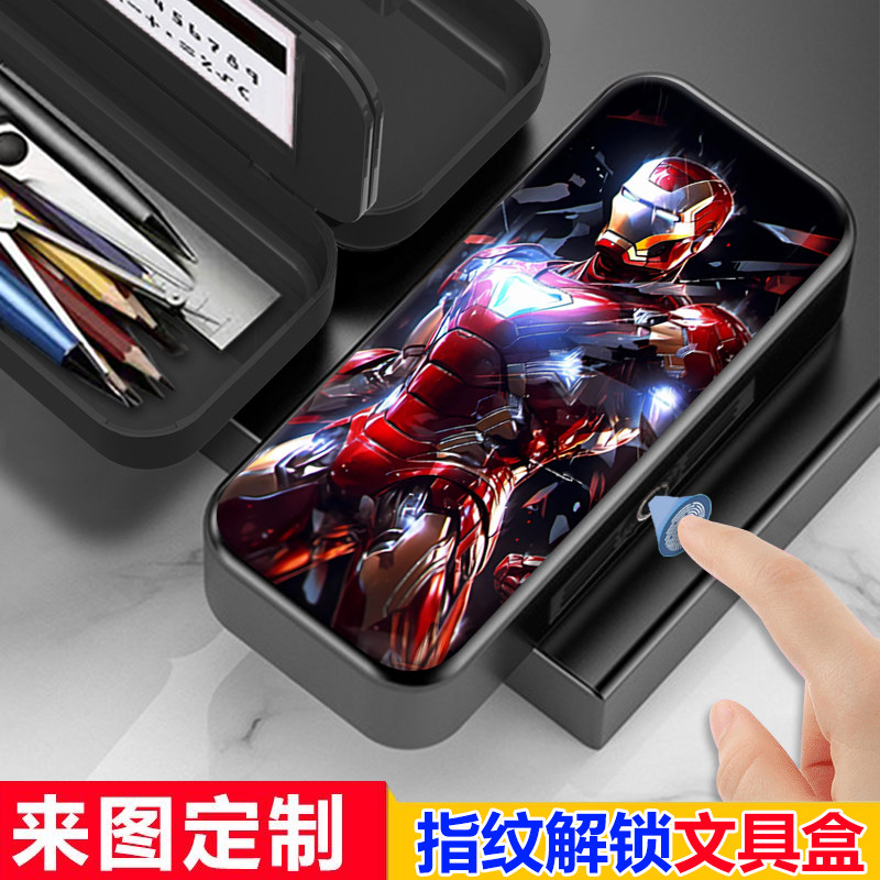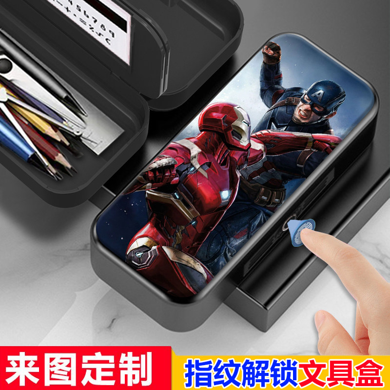 漫威钢铁侠指纹密码文具盒小学生多功能大容量豪华黑科技铅笔盒女