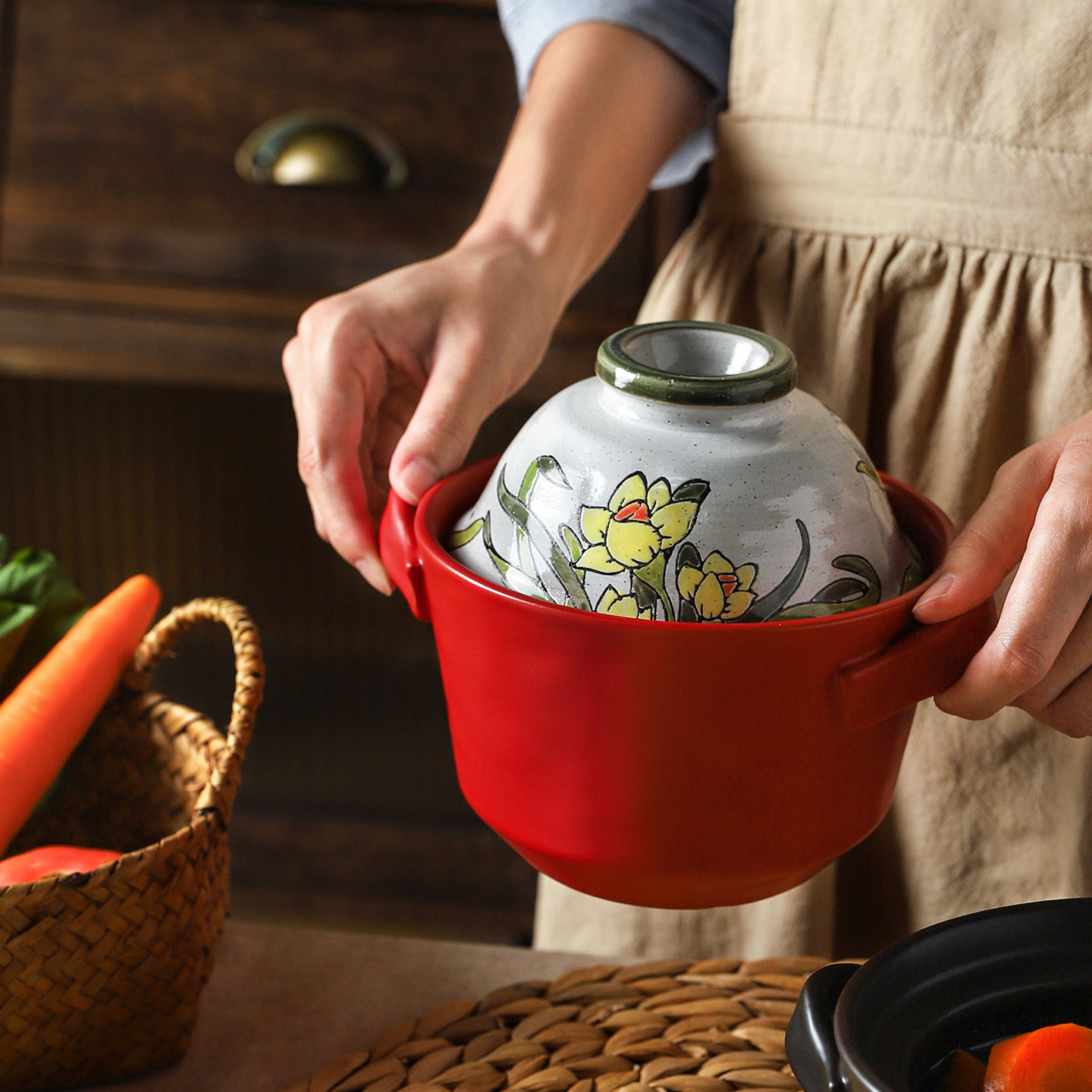 优质陶瓷|高温不裂|防烫双耳|一盖两用