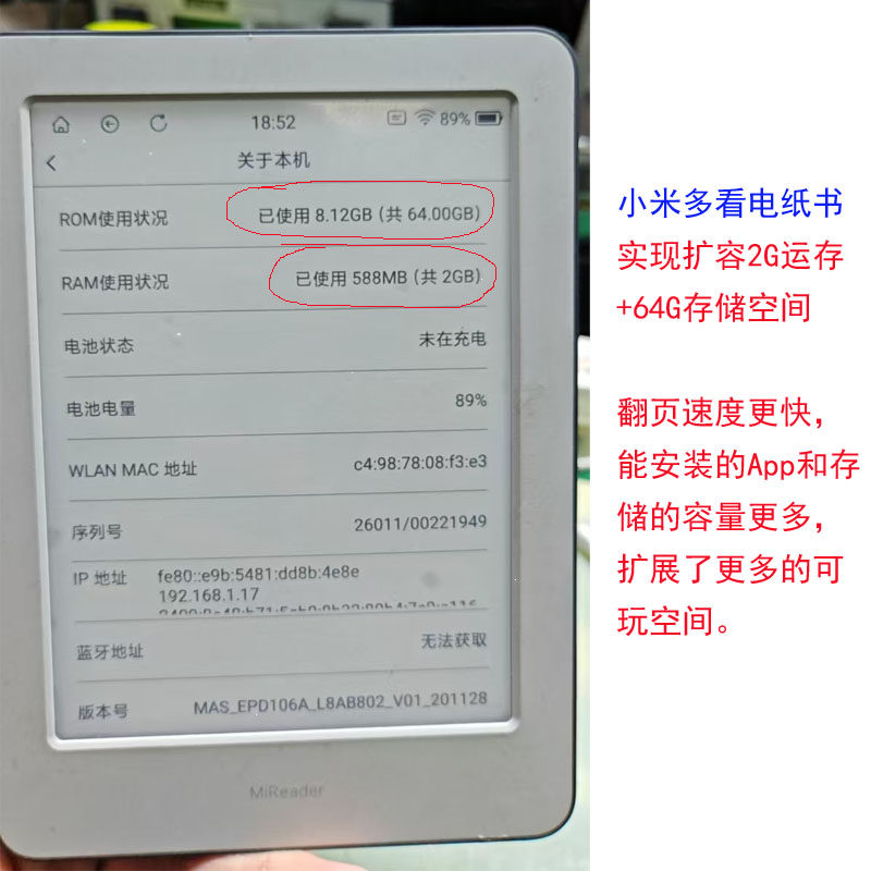 小米多看电纸书阅读器维修电池变砖刷机安卓墨案扩容内存解除密码