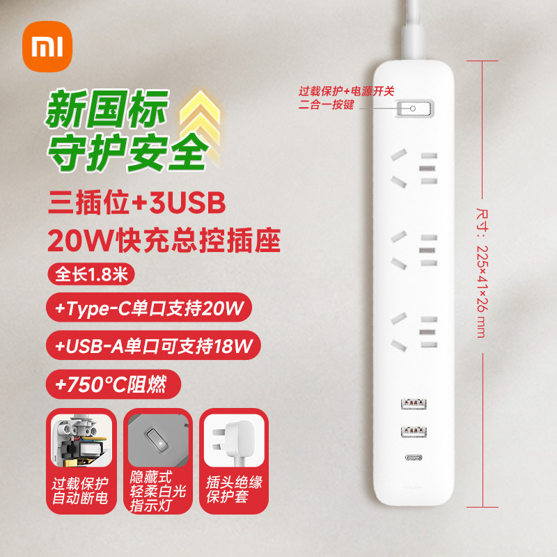 小米插座插线板20W快充拖线板usb插排多插位接线板宿舍家用转换器