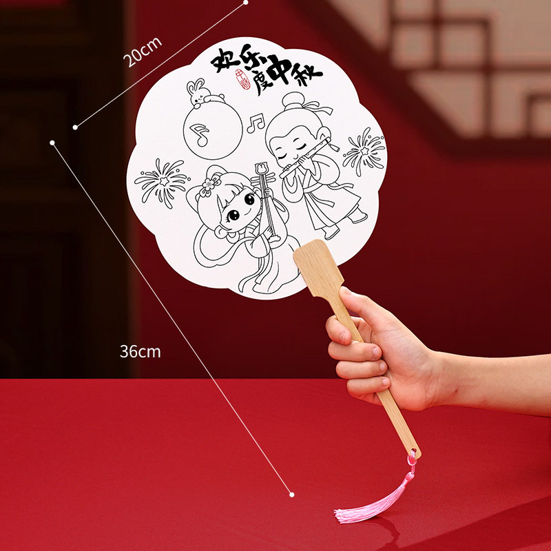 中秋节活动伴手礼儿童涂鸦国风团扇创意国潮幼儿园礼物古风扇子
