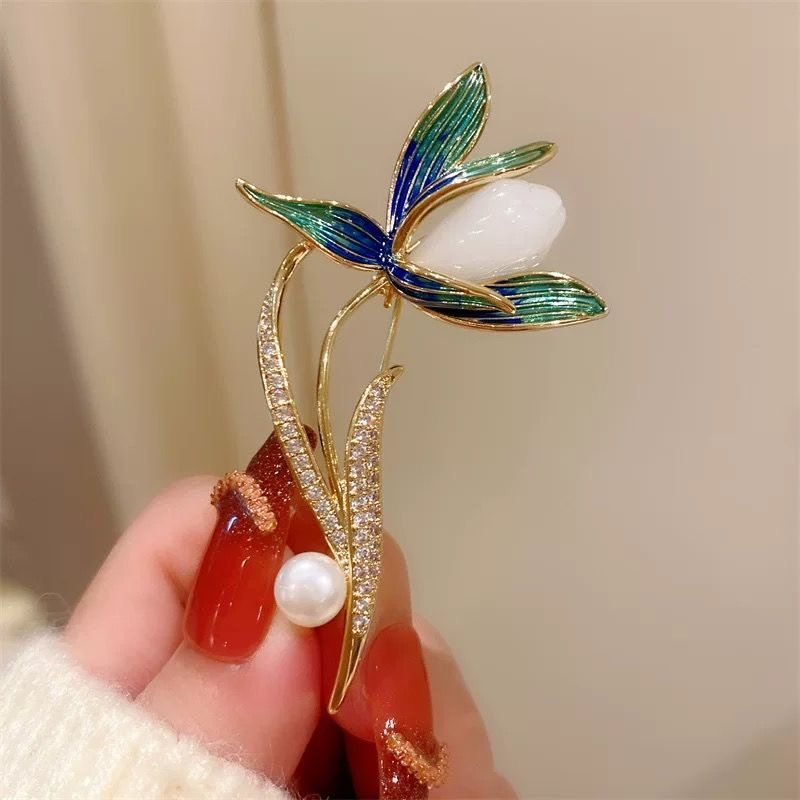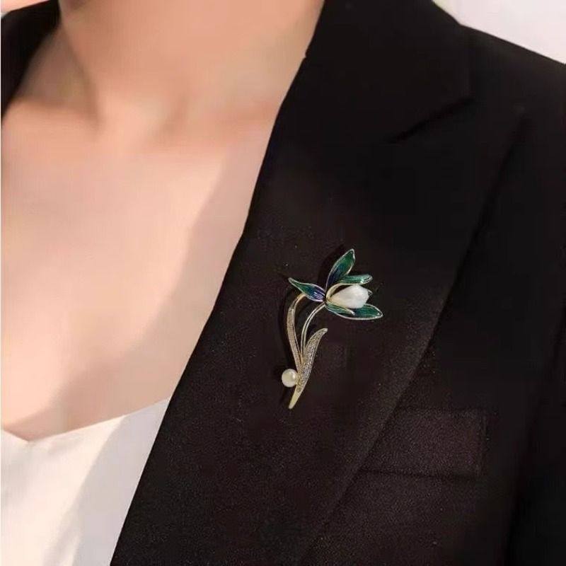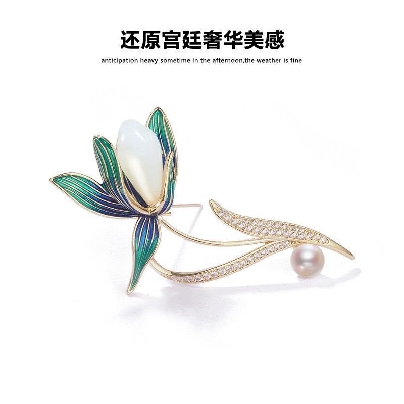 VZZS中国风兰花胸针高档女新款西装西服高级别针胸花配饰玉兰送礼