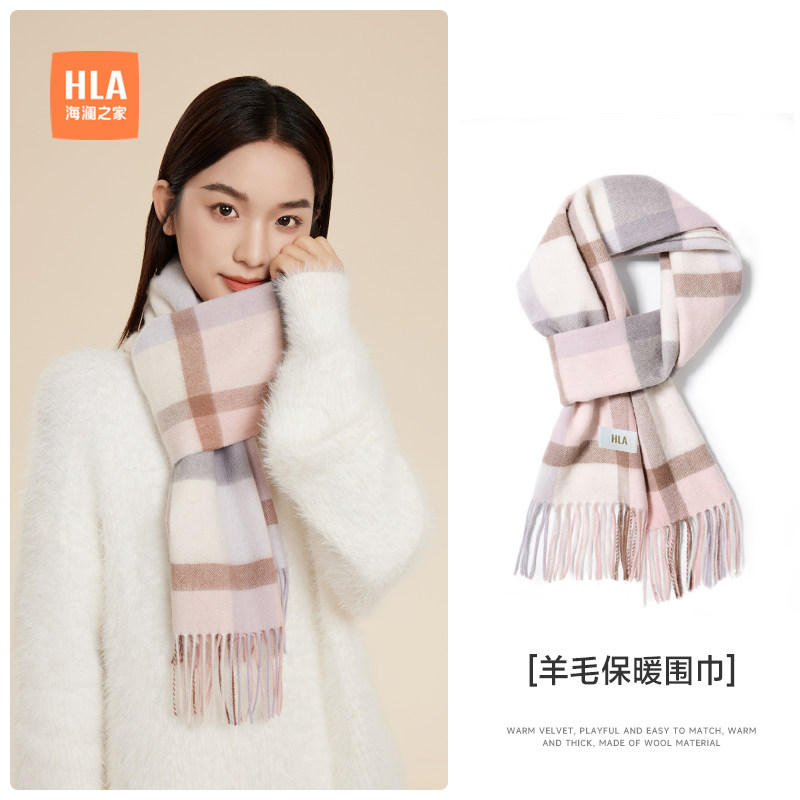 海澜之家绵羊毛围巾女士2025新款秋冬保暖格子流苏围脖礼盒送女友