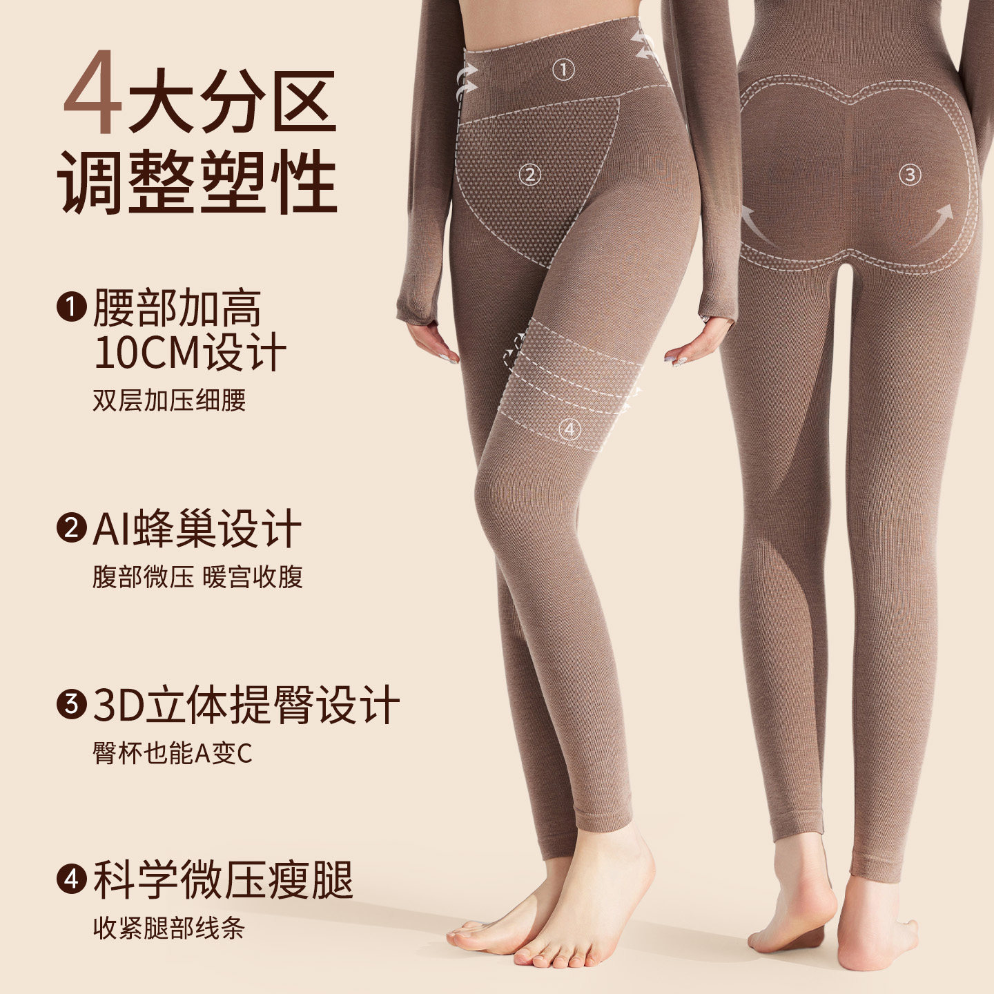 高腰秋裤女加厚加绒羊毛蚕丝打底裤女发热德绒无痕保暖羊绒棉裤冬