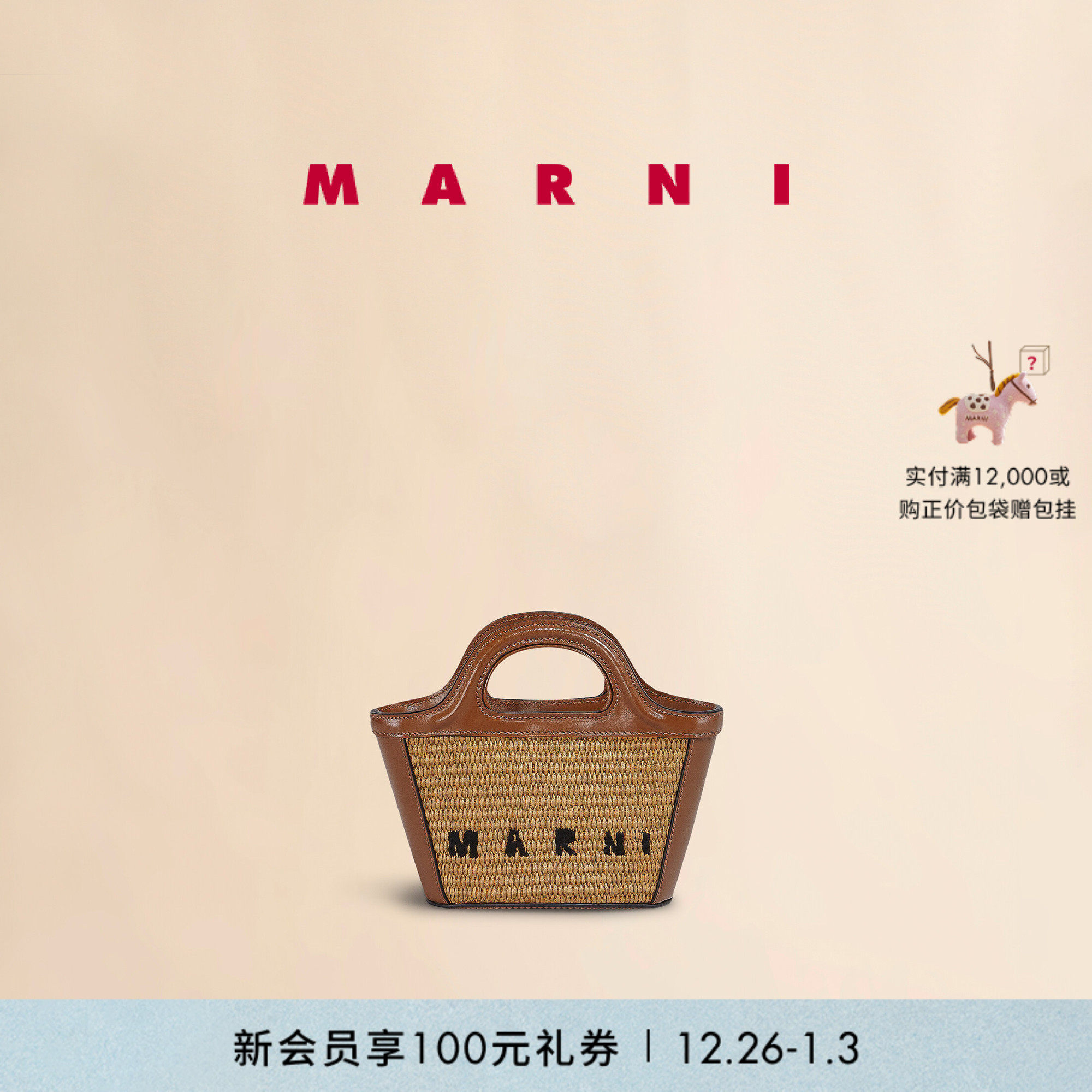 【新年礼物】MARNI TROPICALIA经典款女士小号草编斜挎包编织包