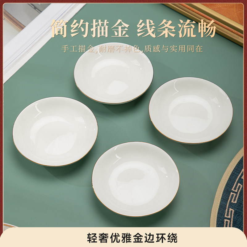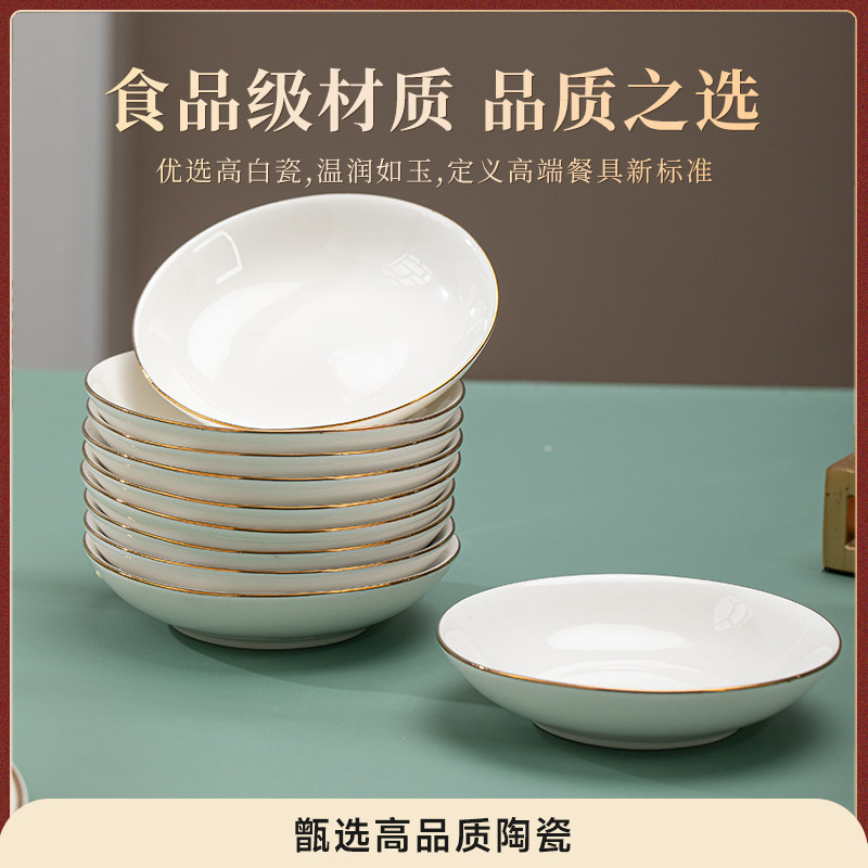 浅盘平盘子家用6英寸吐骨碟菜碟垃圾盘金边陶瓷精致高端微波炉