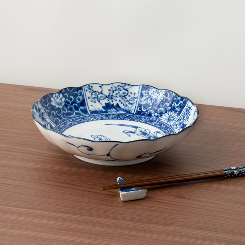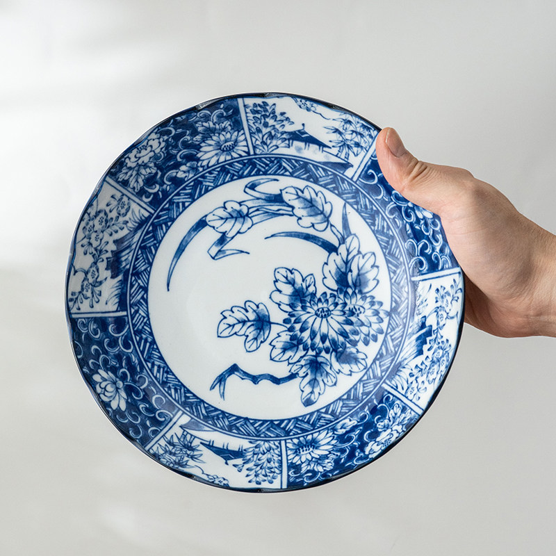 美浓烧间取草花唐草8.0英寸深盘家用餐具装菜盘子大容量釉下餐具
