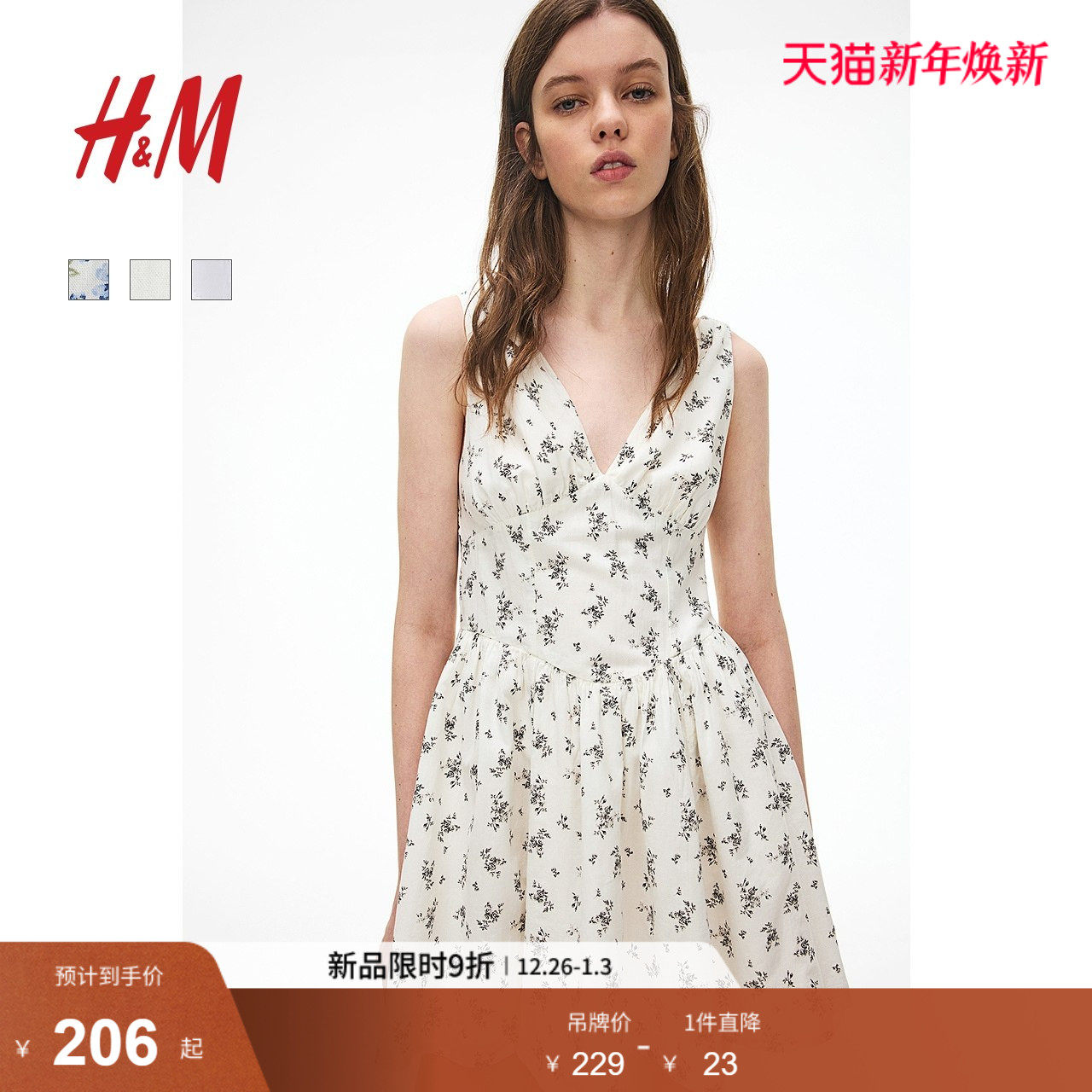 HM女装无领花卉连衣裙25冬新款法式褶皱收腰设计感碎花裙1269440