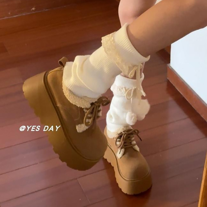 miu家厚底雪地靴女冬季真皮短靴羊毛侧拉链增高厚底加绒毛毛棉鞋