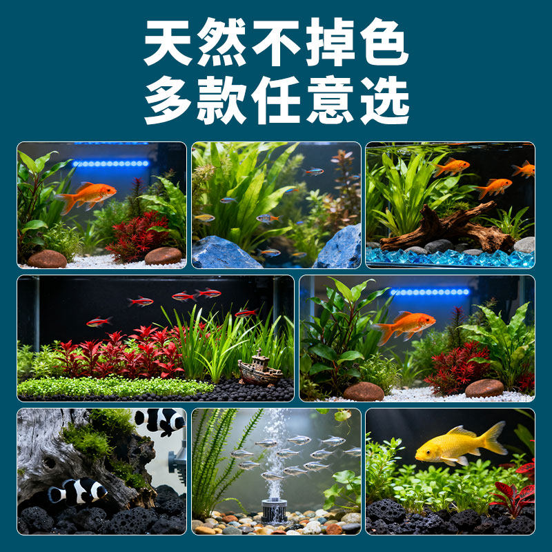 塑料仿真水草鱼缸植物海藻球造景套餐小型铺底金假彩石花装饰生态