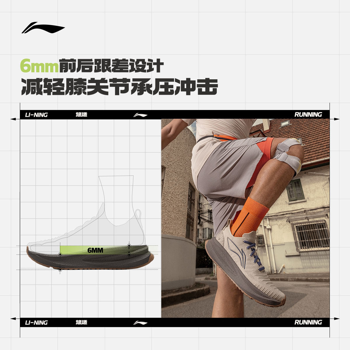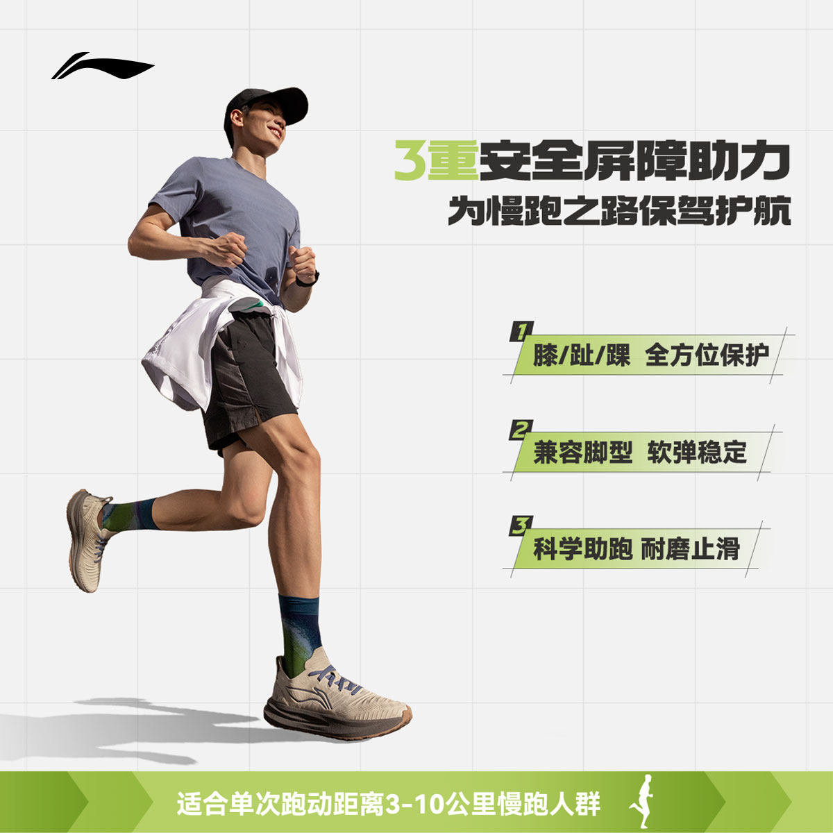 李宁悠适丨 跑步鞋男厚底全掌䨻专业减震支撑网面透气软底运动鞋