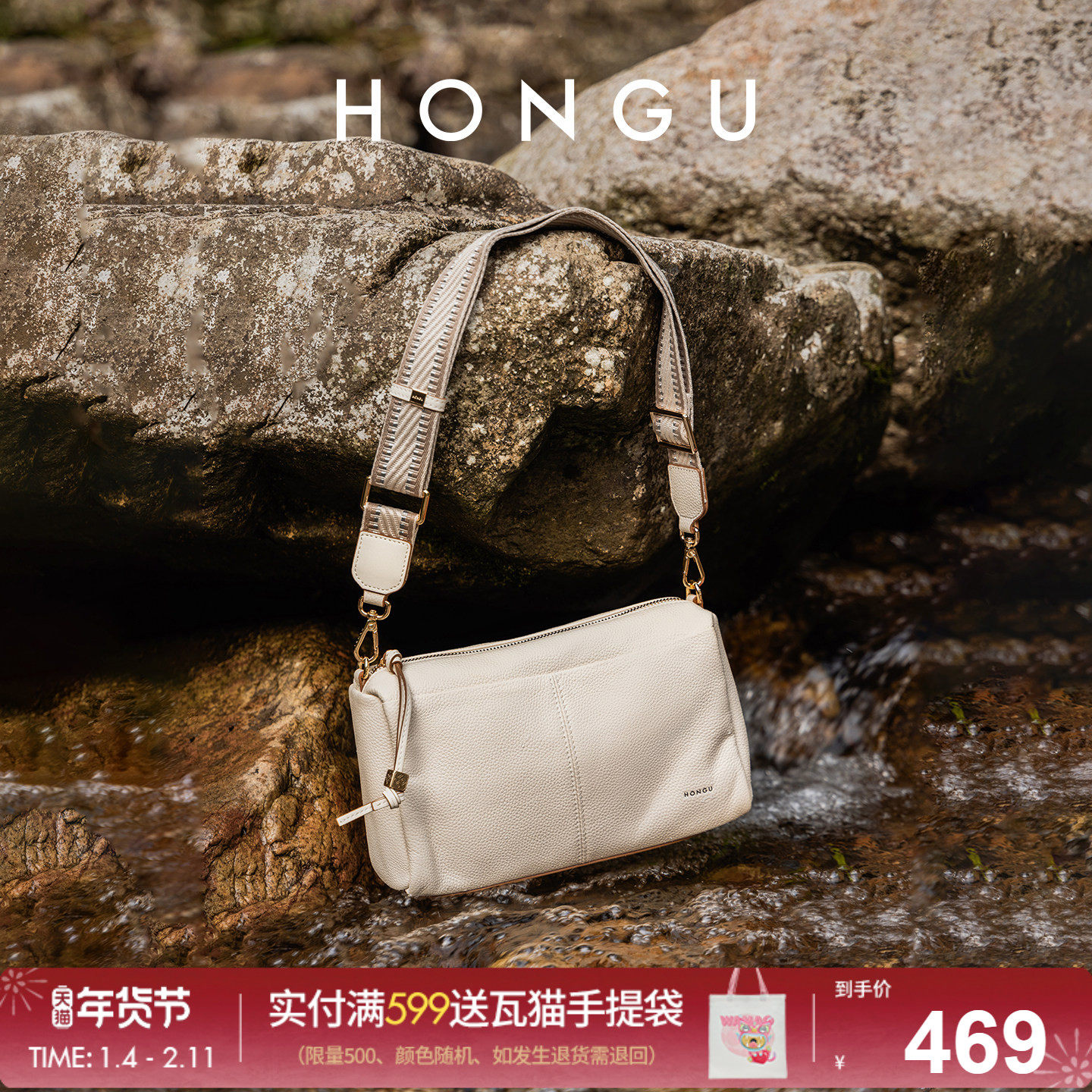 红谷包包2025新款夏季时尚真皮单肩腋下包波士顿枕头包女士包小包