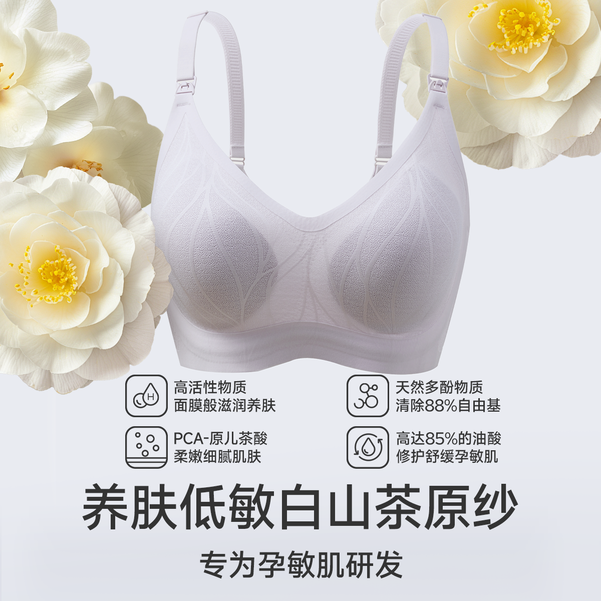 婧麒奢柔白山茶花孕妇哺乳内衣聚拢防下垂产后喂奶专用文胸胸罩