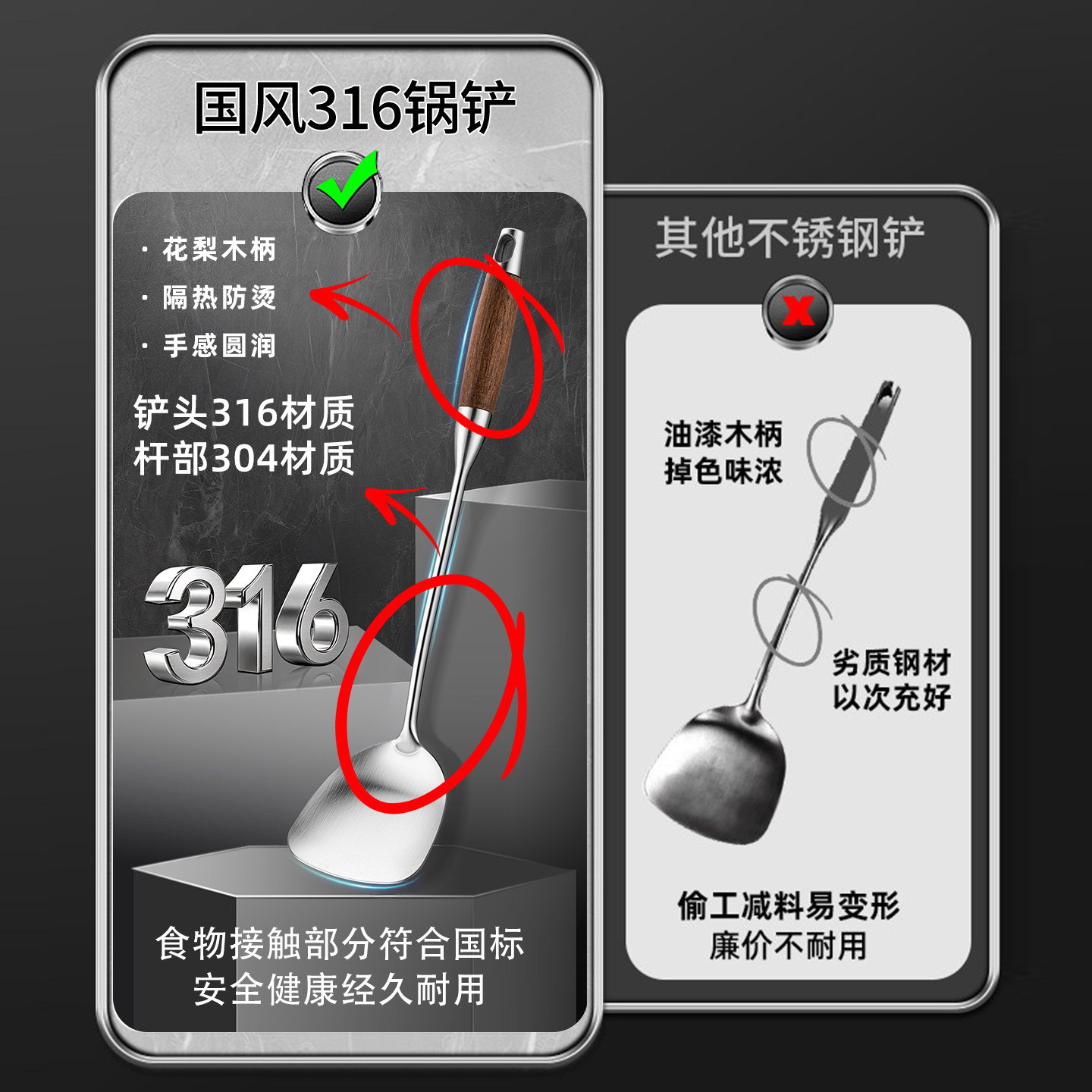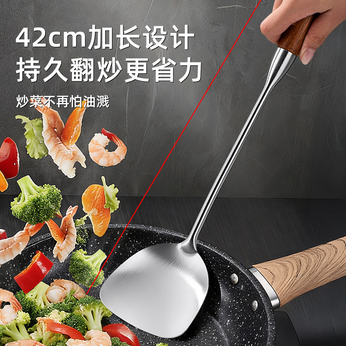 锅铲316不锈钢炒勺炒铲家用汤漏勺厨师专用炒菜勺子铲子加长蘑菇