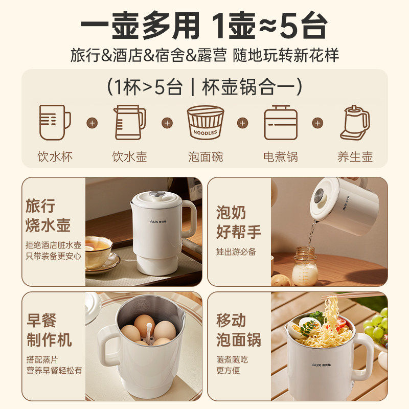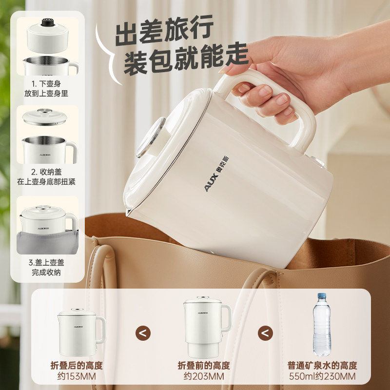 奥克斯便携式烧水壶折叠水壶旅行烧水杯学生电煮锅电水壶电热保温