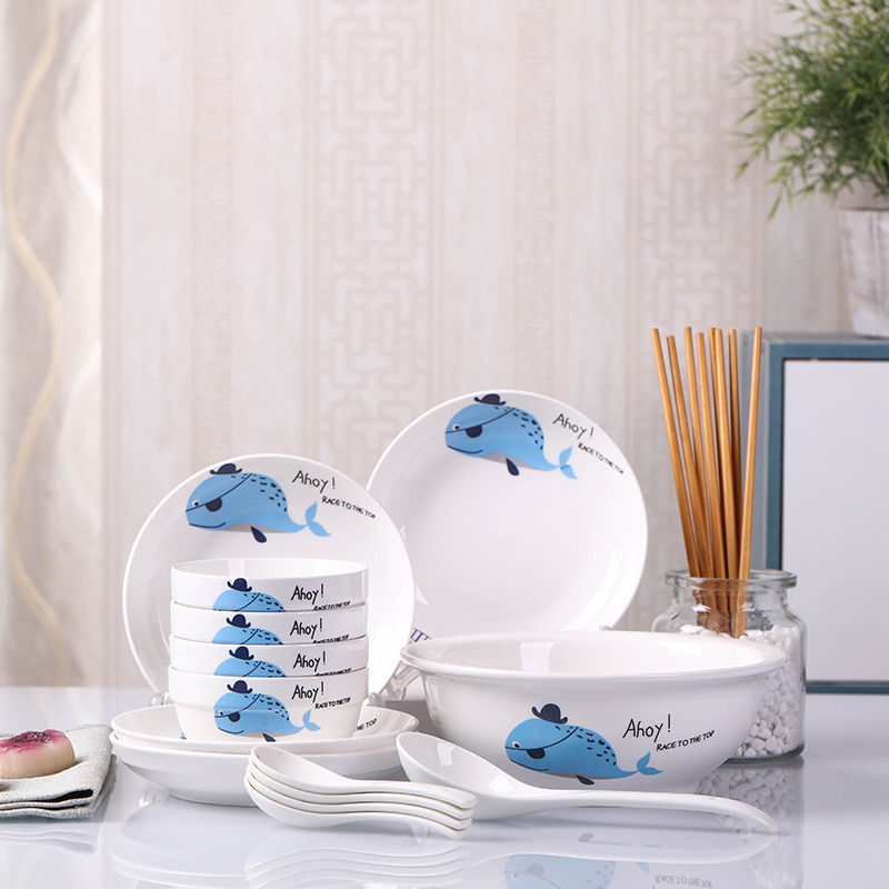 家用餐具碗碟套装陶瓷陶瓷碗盘筷组合釉下彩耐高温带盖泡面实用