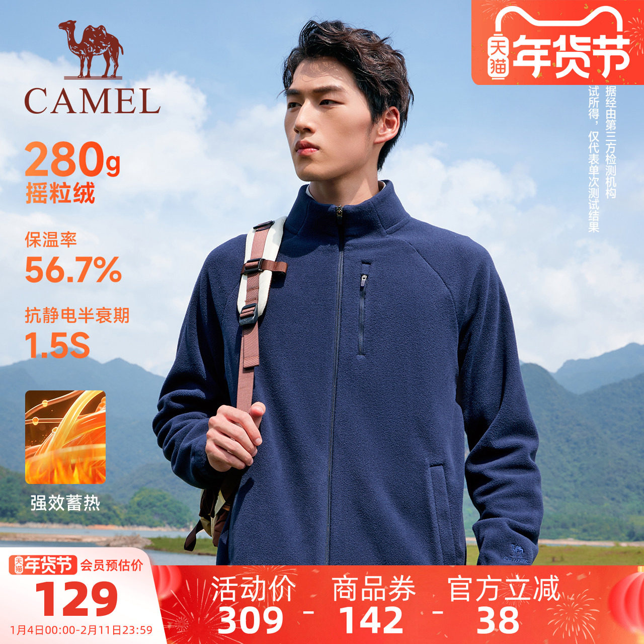 骆驼运动摇粒绒外套男2025年春秋季薄绒保暖内胆立领开衫外套夹克