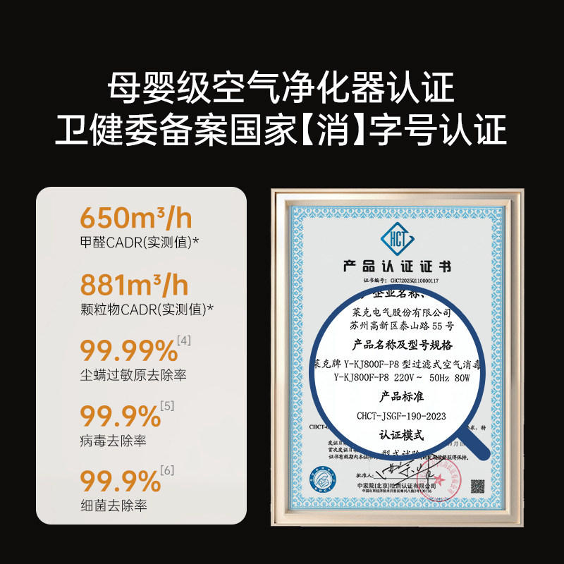 【母婴级】莱克空气净化器除甲醛家用0臭氧除菌消毒全屋净化机P8S