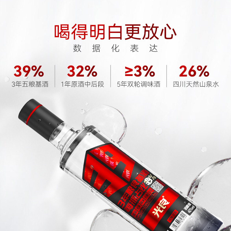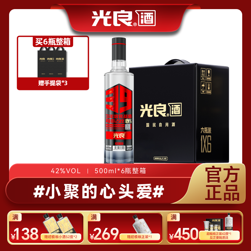 【官方正品】光良白酒39 42度浓香型纯粮食高粱酒送礼500ml整箱