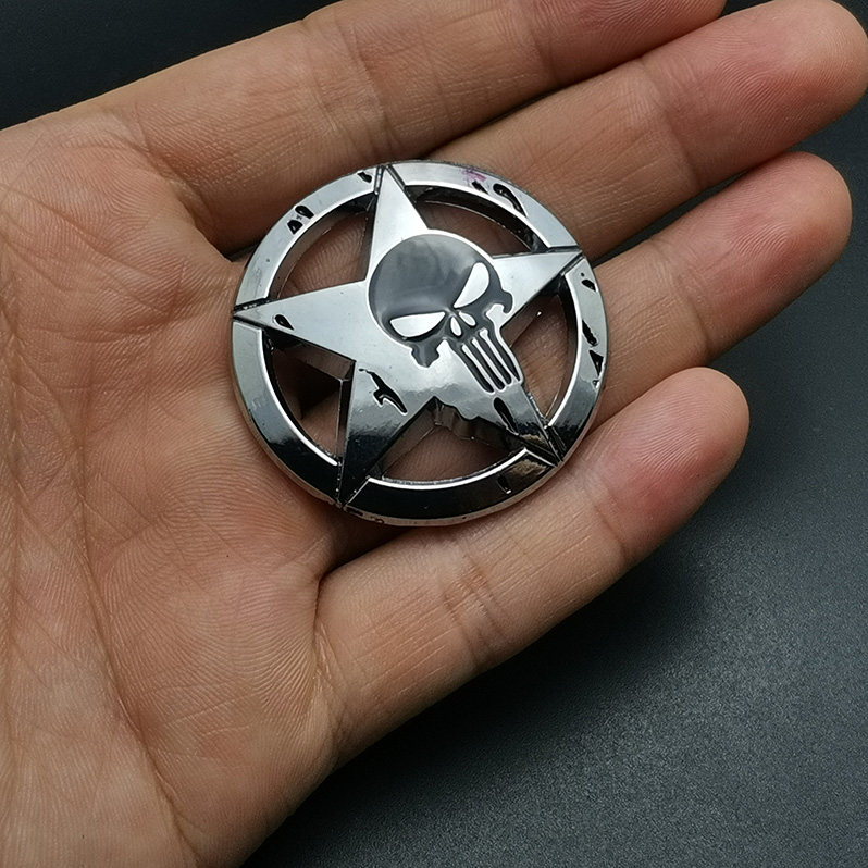 个性创意骷髅头车标海盗摩托汽车身划痕遮挡装饰3D立体鬼头金属贴