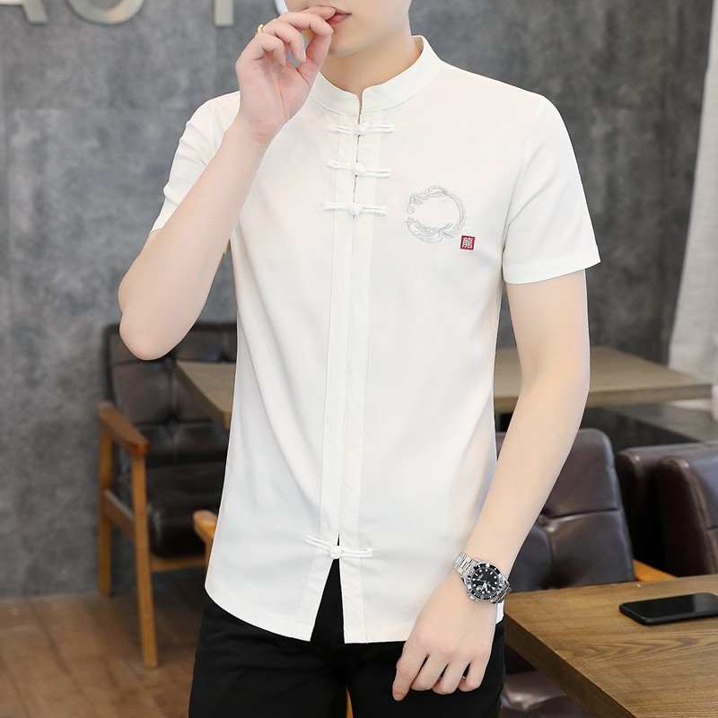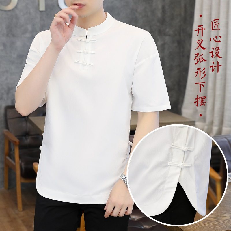 夏季唐装男短袖t恤中国风盘扣衬衫汉服宽松大码汉服棉麻民族风