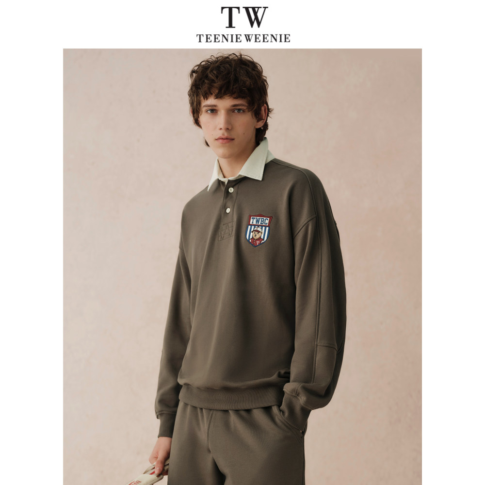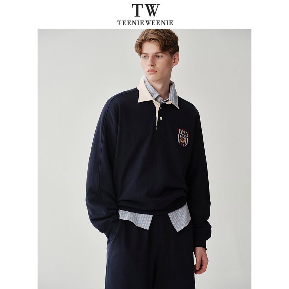 TeenieWeenie小熊男装卫衣2025年春季新款撞色翻领学院风时尚上衣