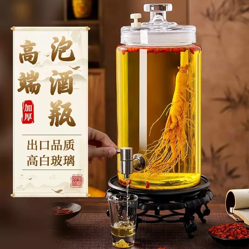 泡酒玻璃瓶家用容器高档专用酒瓶人参存酒罐加厚装白酒坛子带龙头